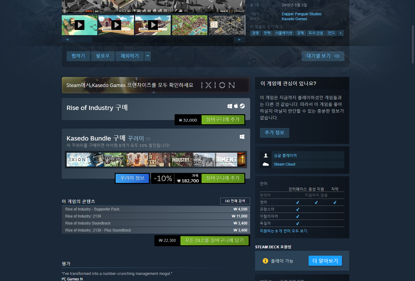 - "Rise of Industry" - Steam 스팀 게임 페이지