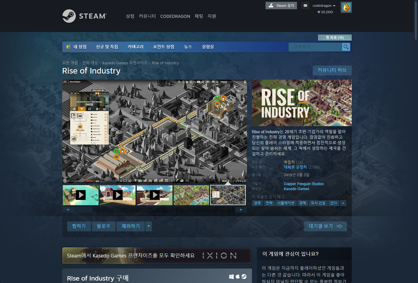 - "Rise of Industry" 한시적 무료게임 구매하기