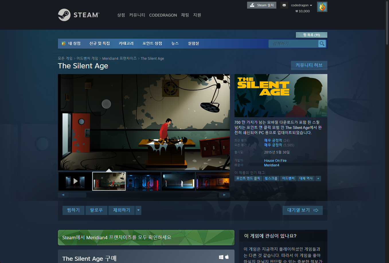 - "The Silent Age" 게임 보유 확인
