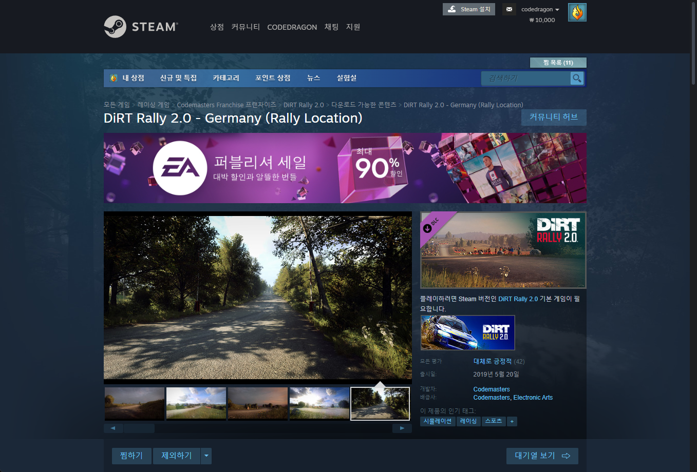 ₩4,400 -> ₩0(FREE) DiRT Rally 2.0 - Germany (Rally Location) DLC 더트 랠리 2.0 확장팩 무료로 받기 영구소장; 스팀 Steam 한시적 무료 영구소장 Temporary free of charge