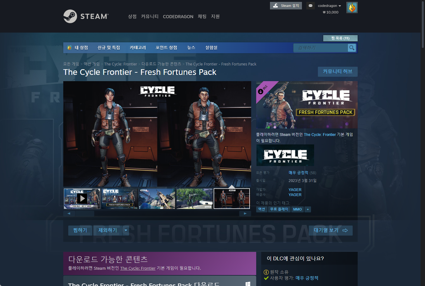 "The Cycle Frontier - Fresh Fortunes Pack" 스팀 게임 페이지 (DLC)