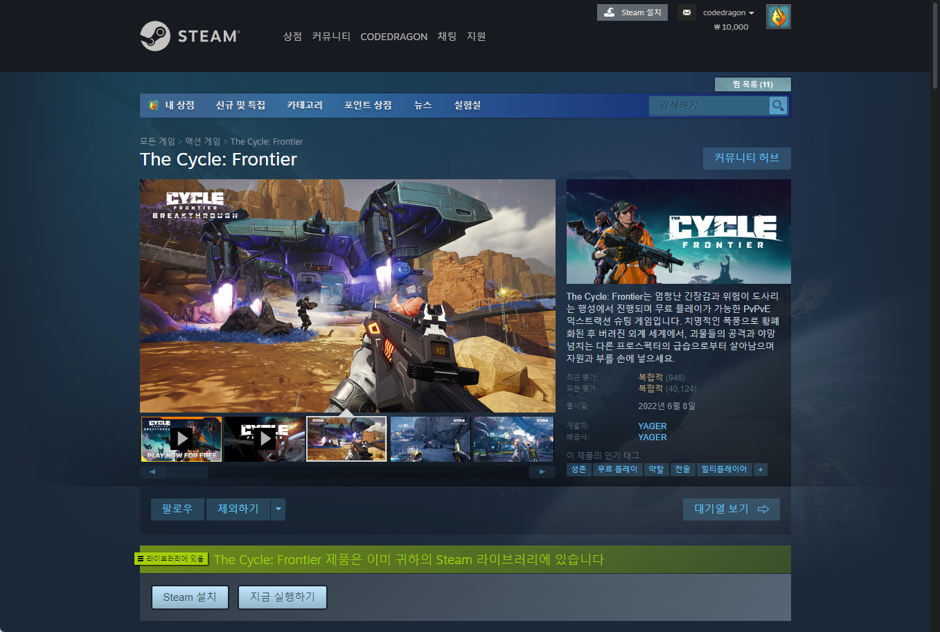 - "The Cycle Frontier" 게임 라이러브러리 확인