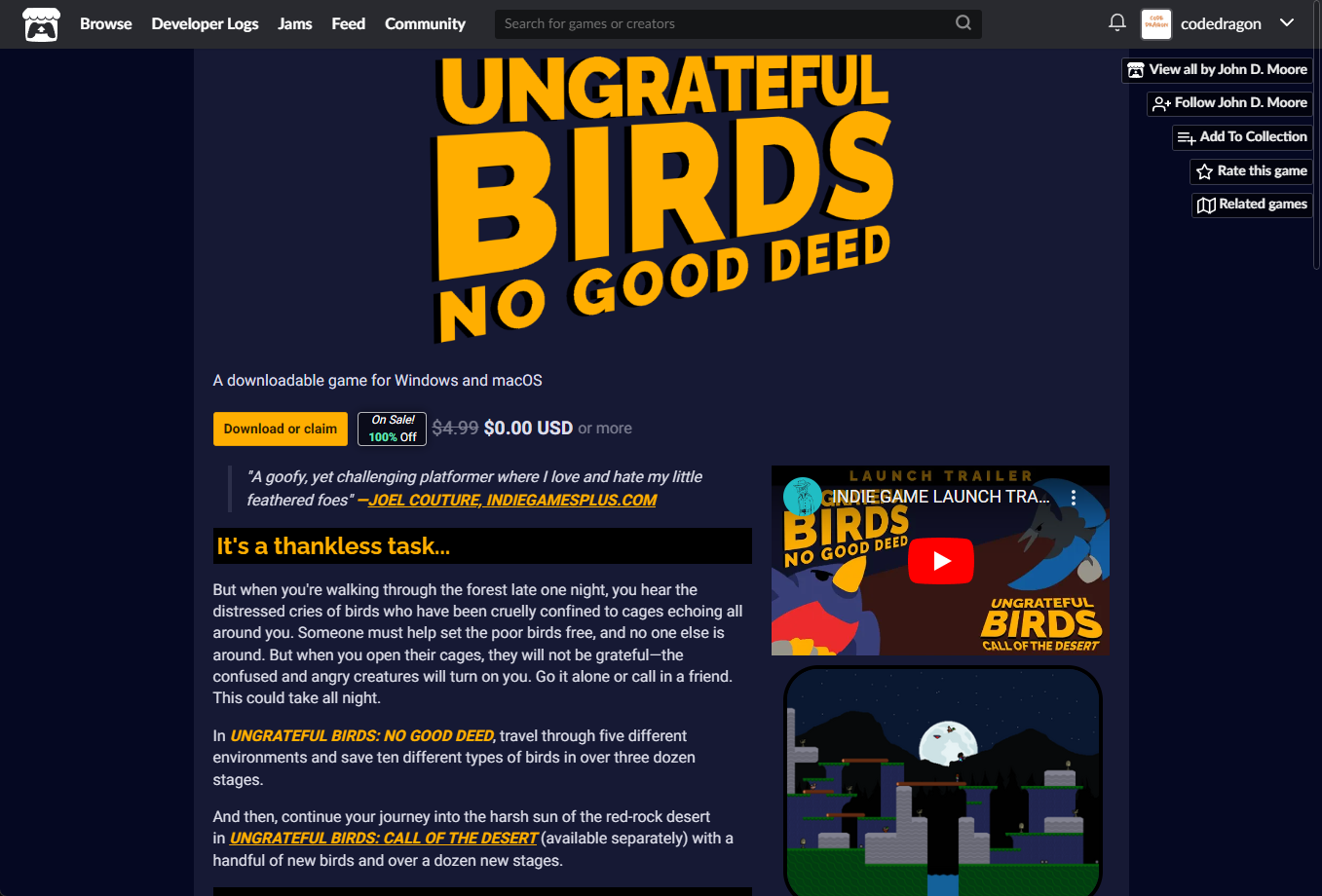- "Ungrateful Birds: No Good Deed" 게임 페이지