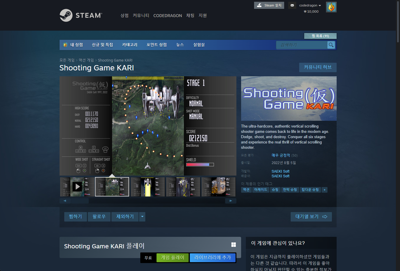 "Shooting Game KARI" 스팀 페이지 입니다.