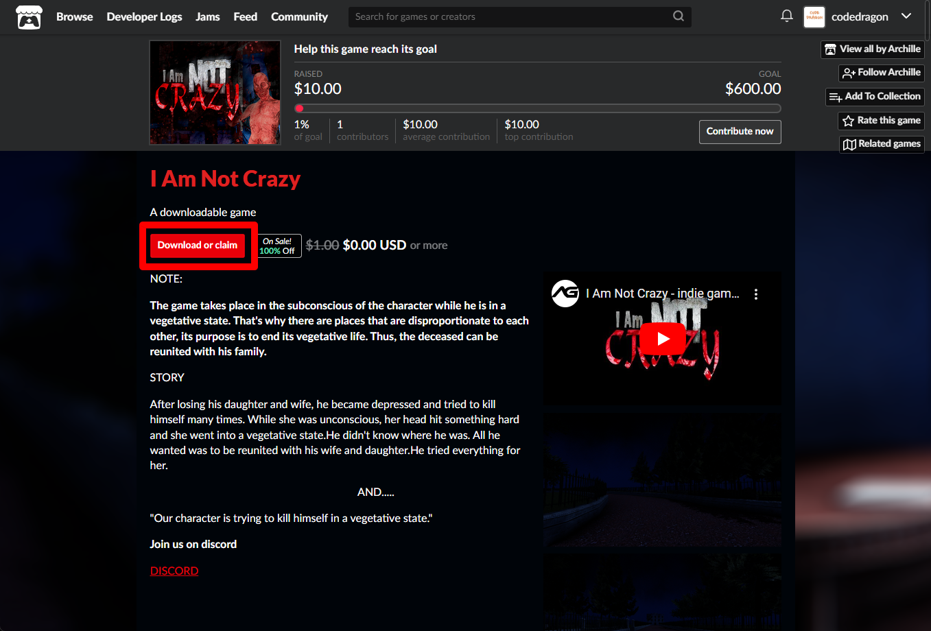 "I Am Not Crazy" 페이지에 있는 [Download or claim]을 클릭합니다.