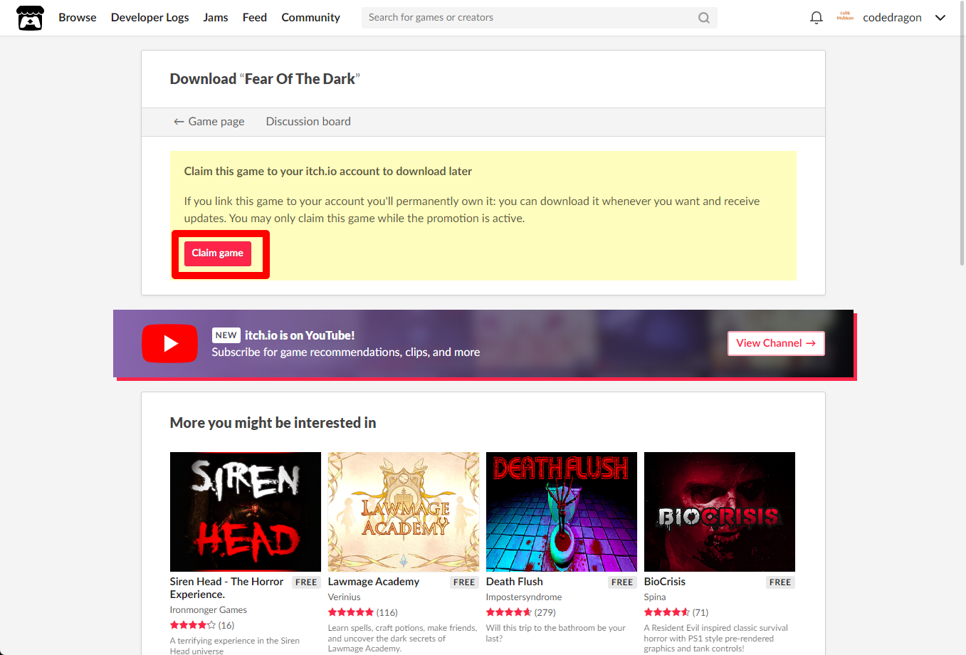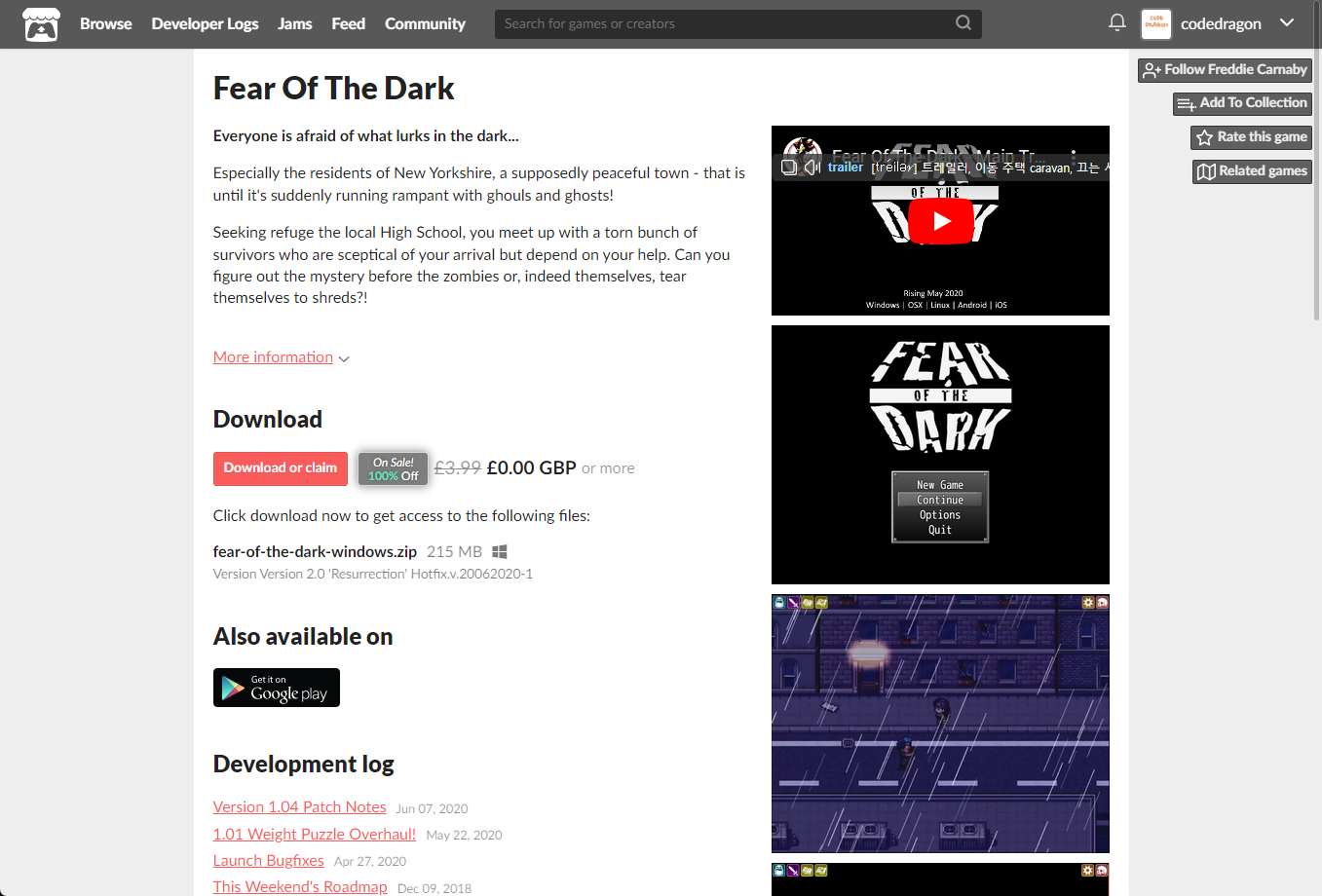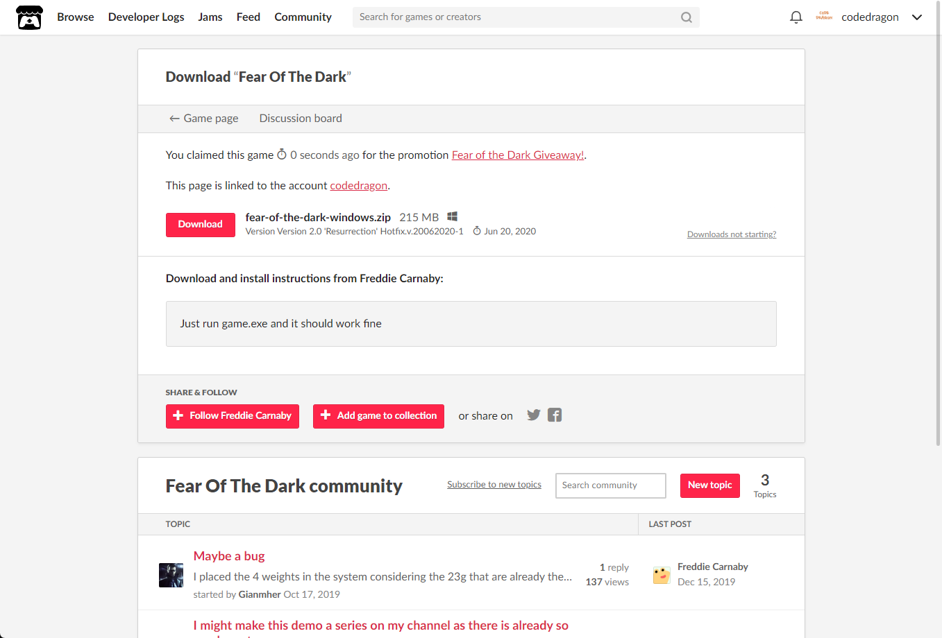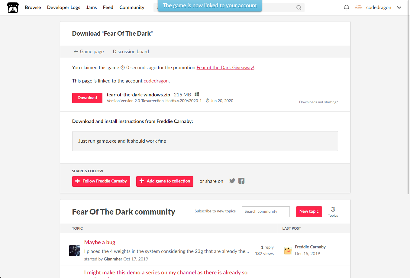 "Fear Of The Dark" 페이지에 있는 [Download or claim]을 클릭합니다.