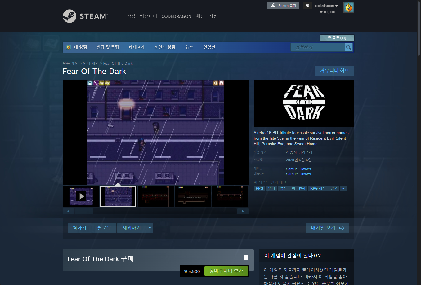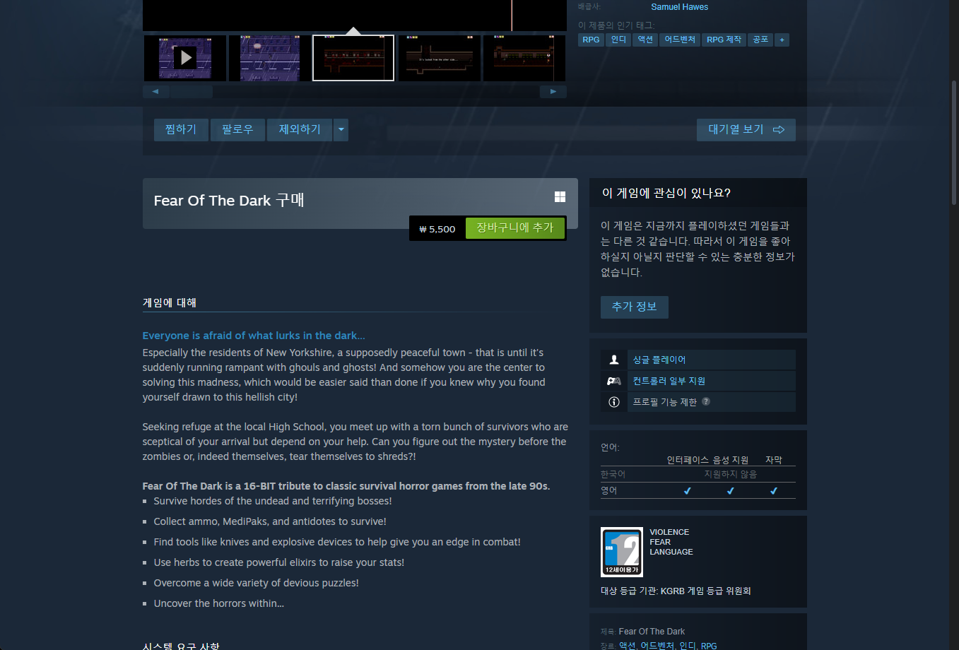 "Fear Of The Dark" 스팀 Steam 페이지