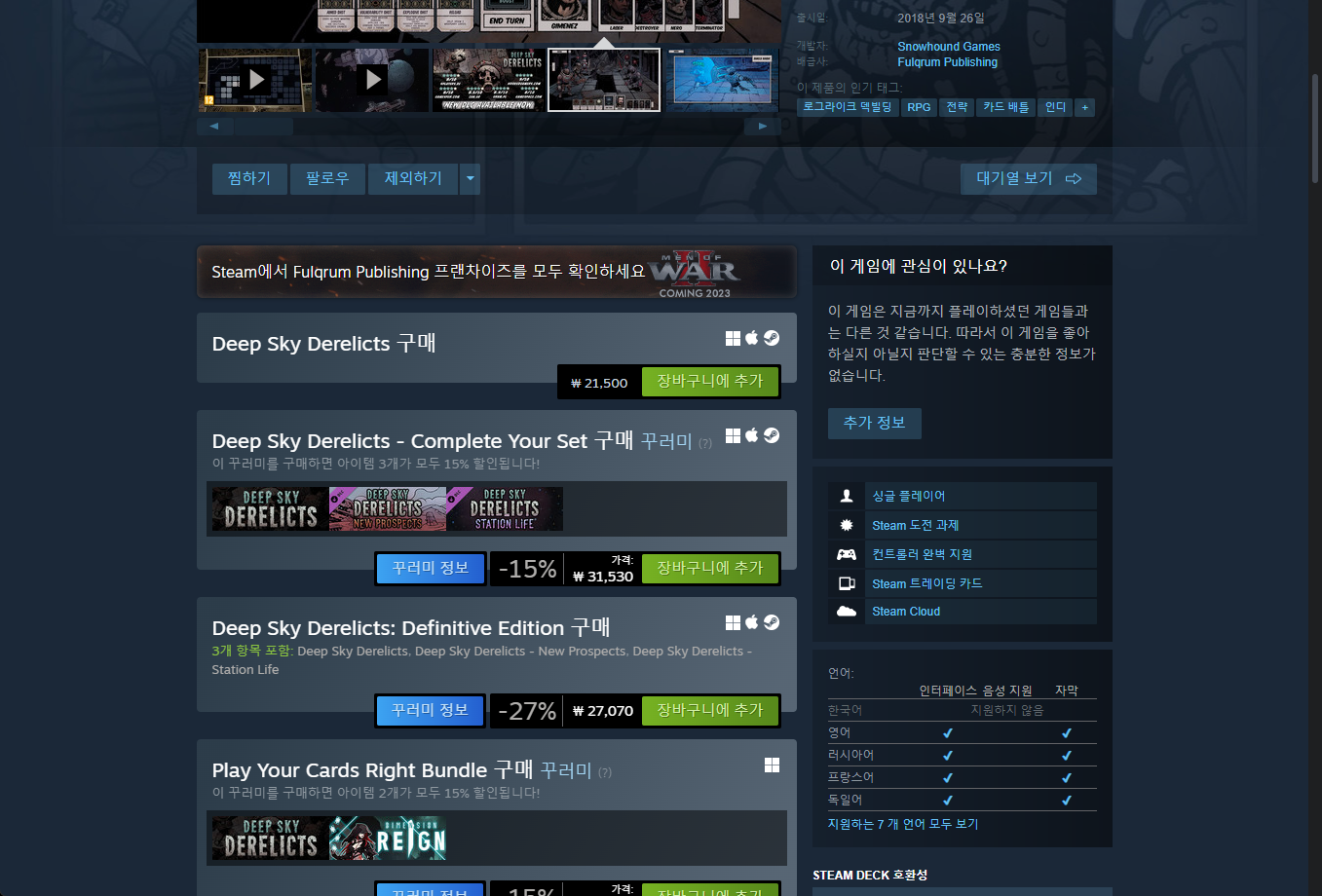 - "Deep Sky Derelicts" - Steam 스팀 페이지