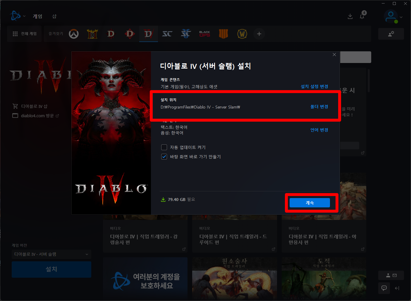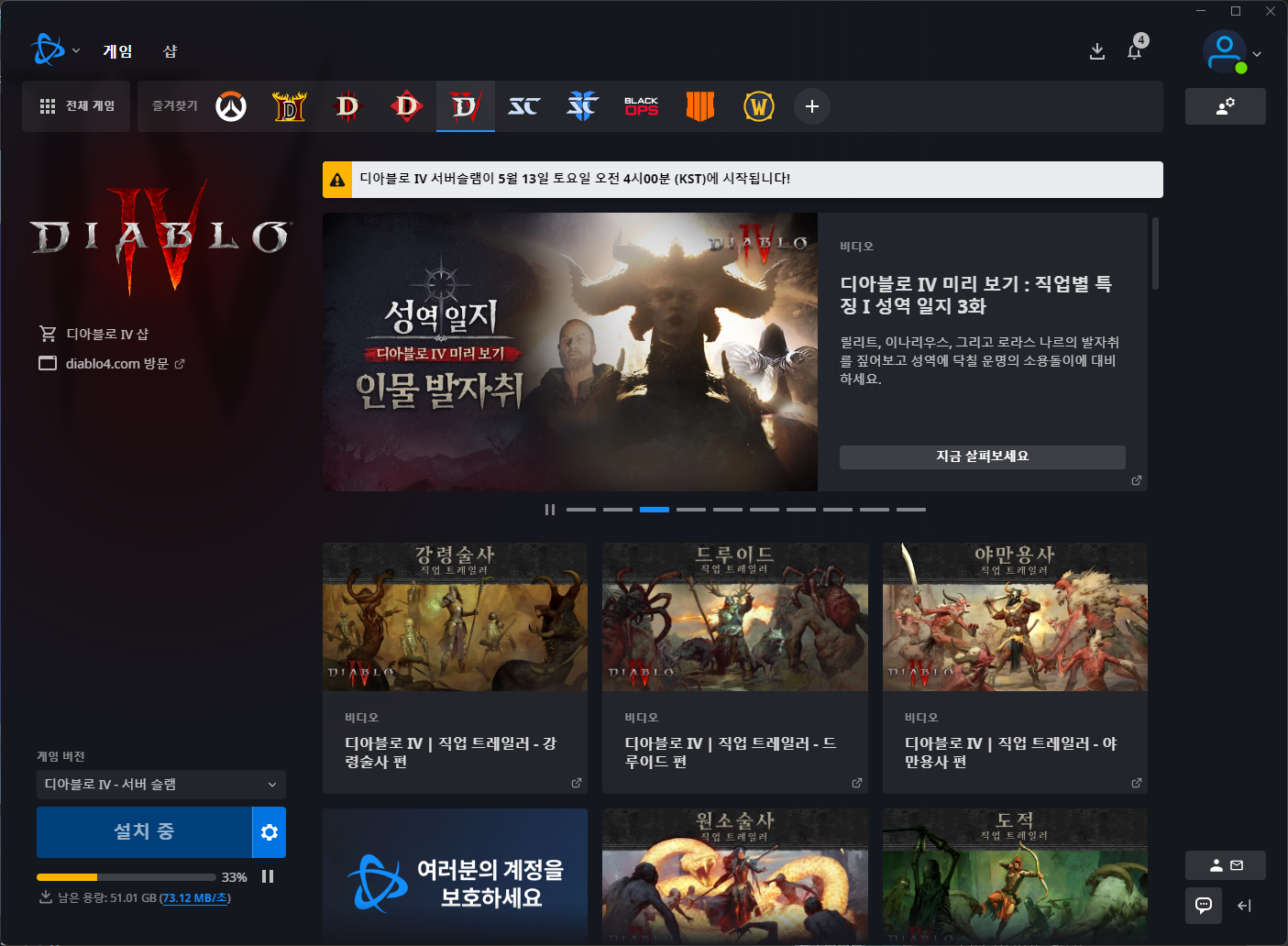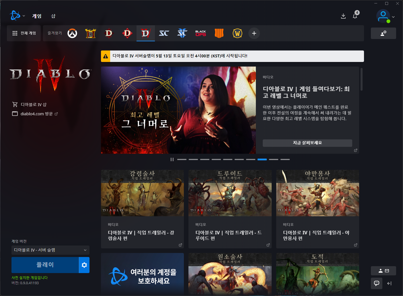 - BATTLE.NET 클라이언트 실행