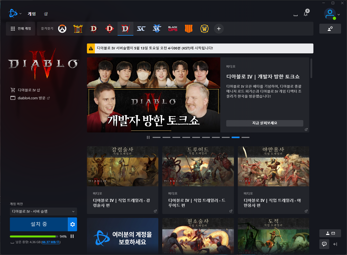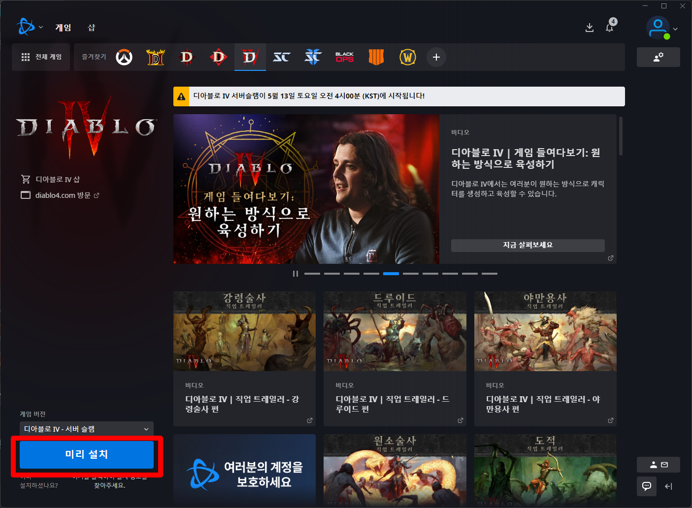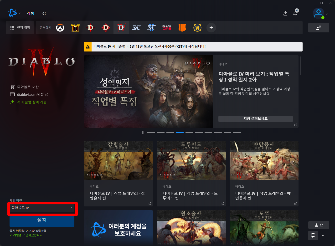 - BATTLE.NET 클라이언트 실행