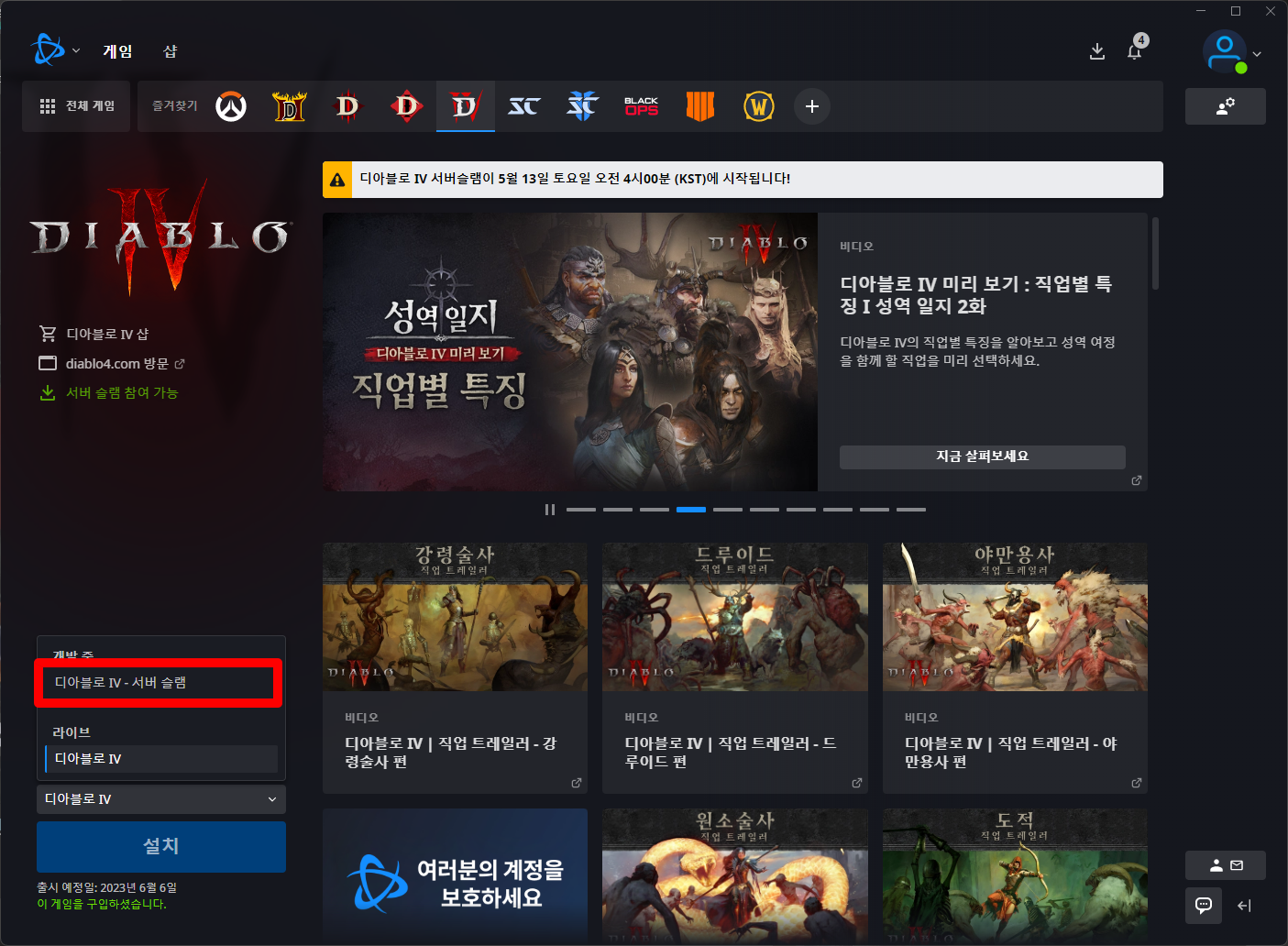 [디아블로 IV - 서버 슬램] 항목 선택합니다.