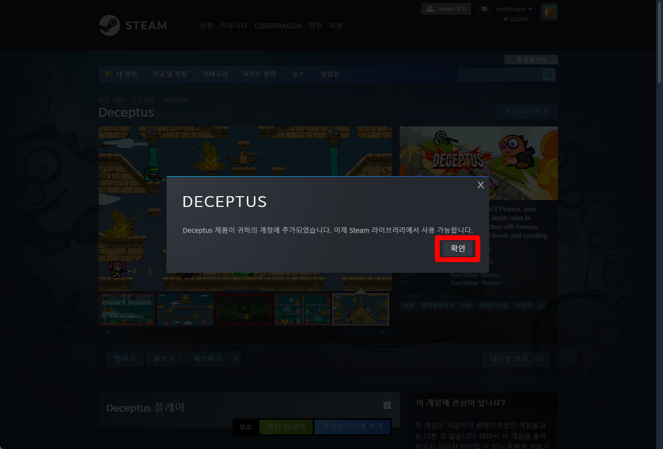 "Deceptus" 페이지를 내려 [라이브러리에 추가]를 클릭하면 됩니다.