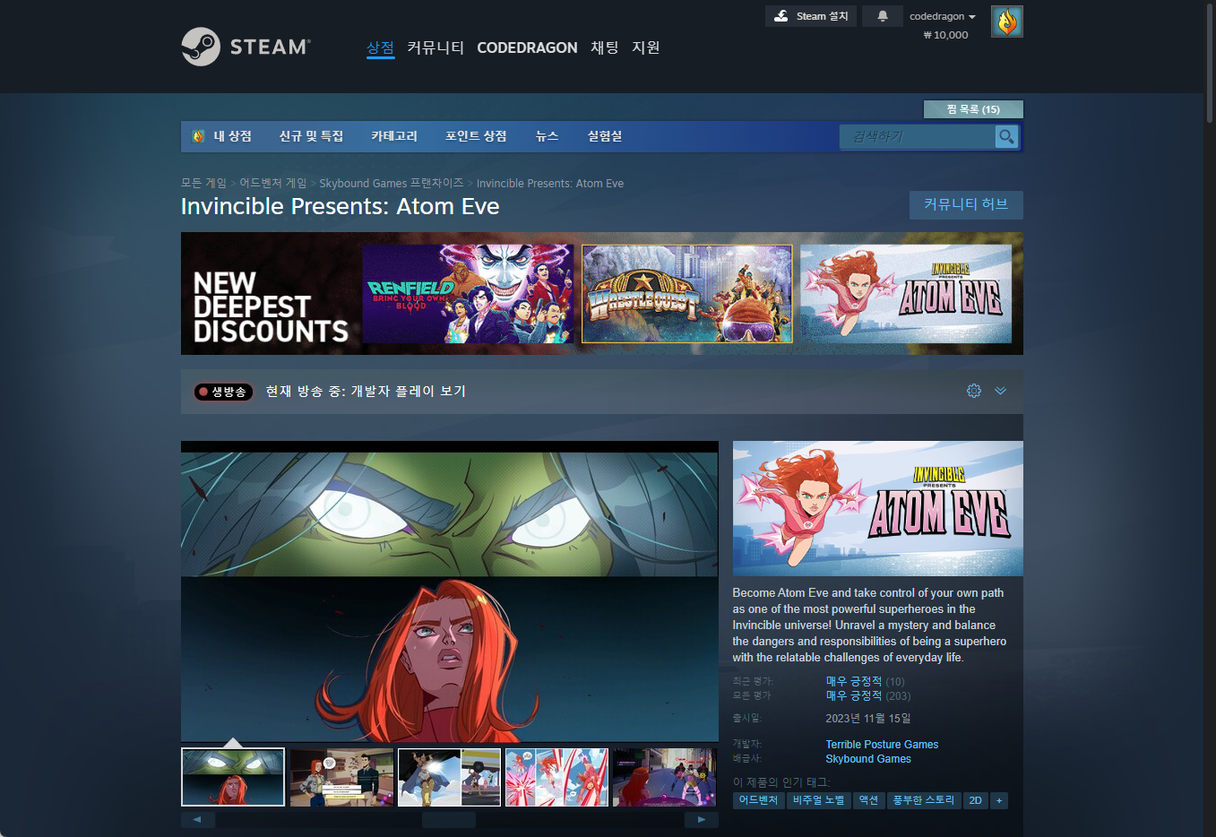 - "Invincible Presents: Atom Eve" - Steam 스팀 게임 페이지