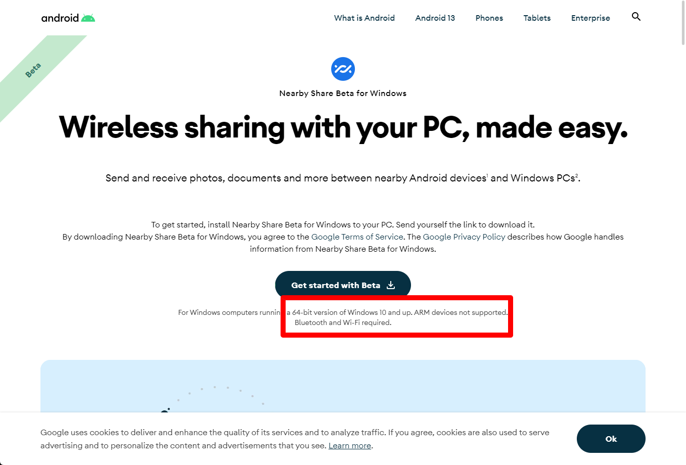 Nearby Share는 ARM기반 디바이스는 지원하지 않고 블루투스와 와이파이 연결이 필요합니다.