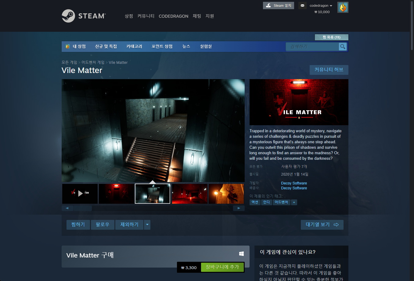 - "Vile Matter" 나의 게임 라이브러리 확인