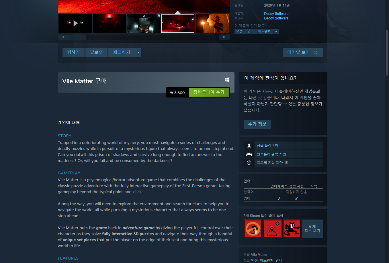 "어드벤처" 게임인 "Vile Matter" 입니다.
