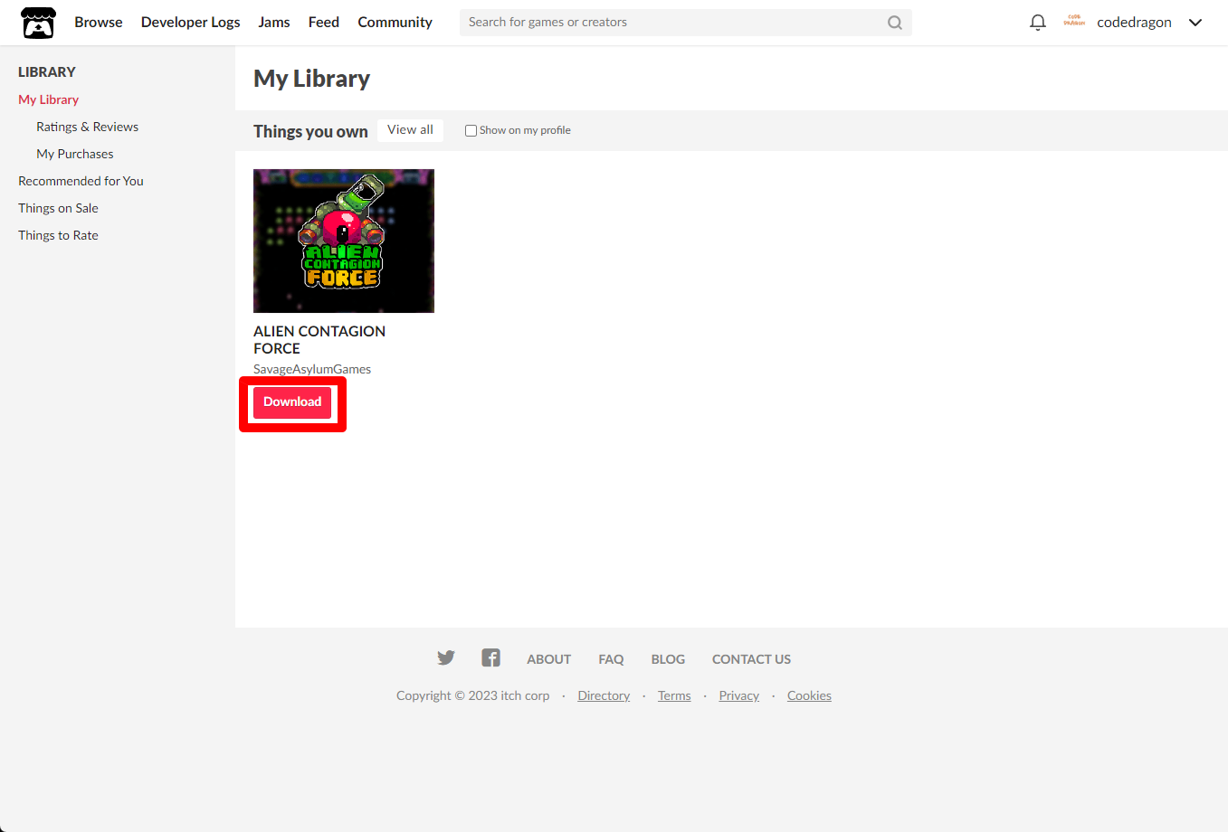 [Claim game]을 클릭하면 "ALIEN CONTAGION FORCE" 게임이 나의 게임 라이브러리에 추가되고 설치파일을 다운받을 수 있는 페이지로 이동됩니다.