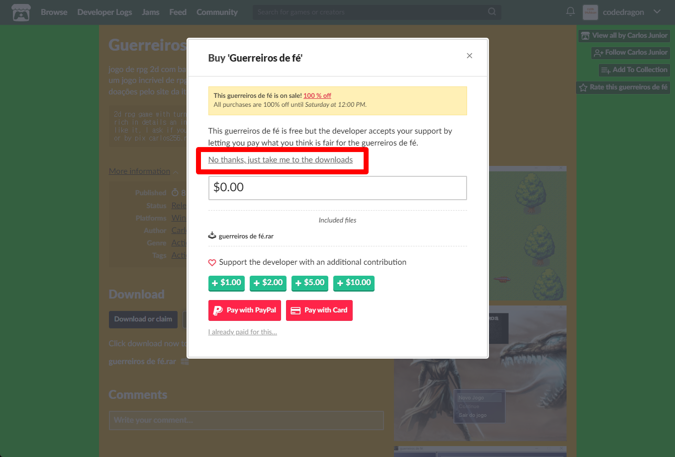"Guerreiros de fé" 구매창에서 [No thanks, just take me to the downloads] 링크를 클릭합니다.