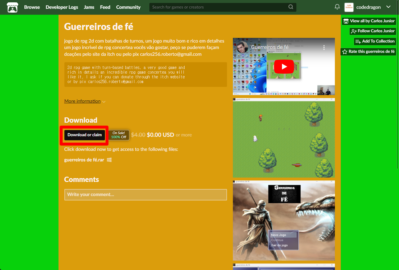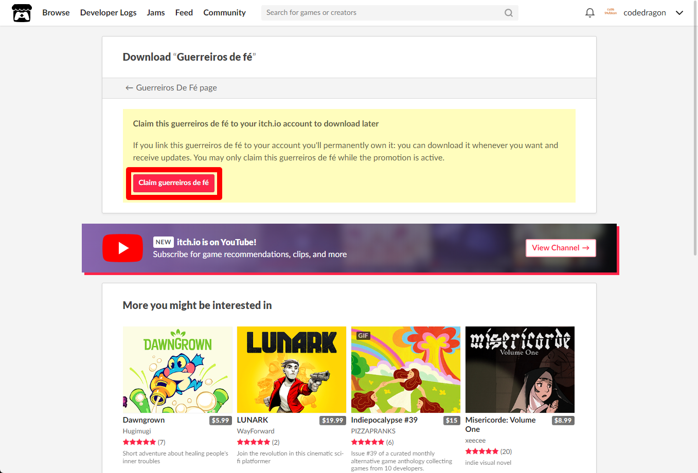 "Guerreiros de fé" 페이지에 있는 [Download or claim]을 클릭합니다.