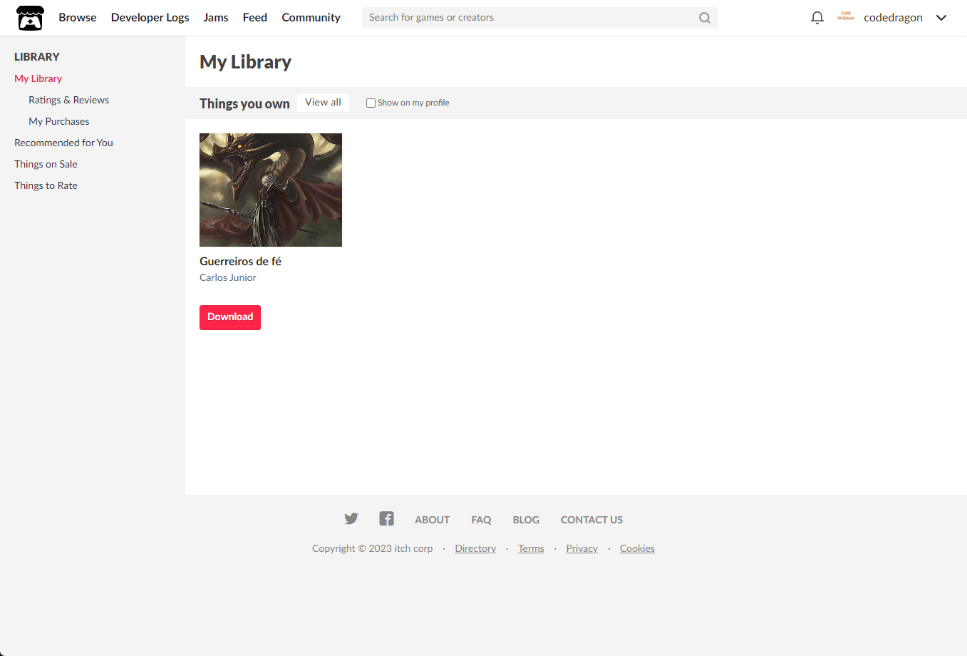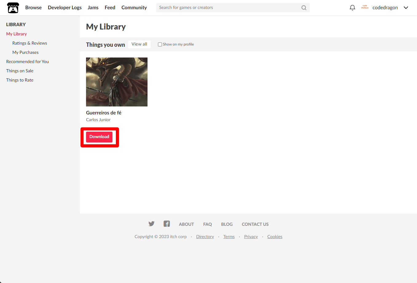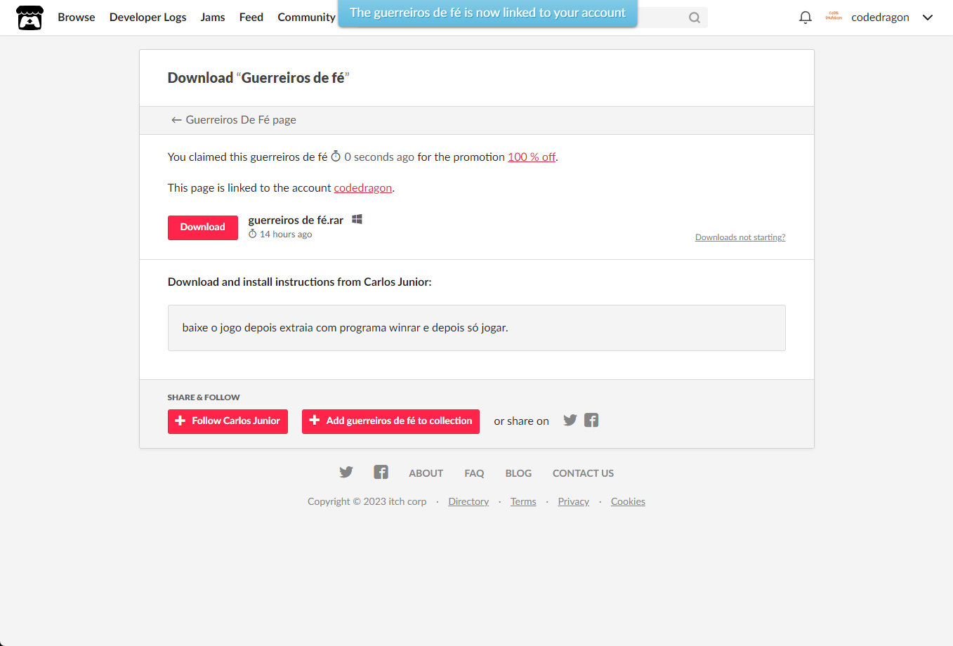 [Claim Guerreiros de fé]을 클릭하면 "Guerreiros de fé" 게임이 나의 게임 라이브러리에 추가되고 설치파일을 다운받을 수 있는 페이지로 이동됩니다.
