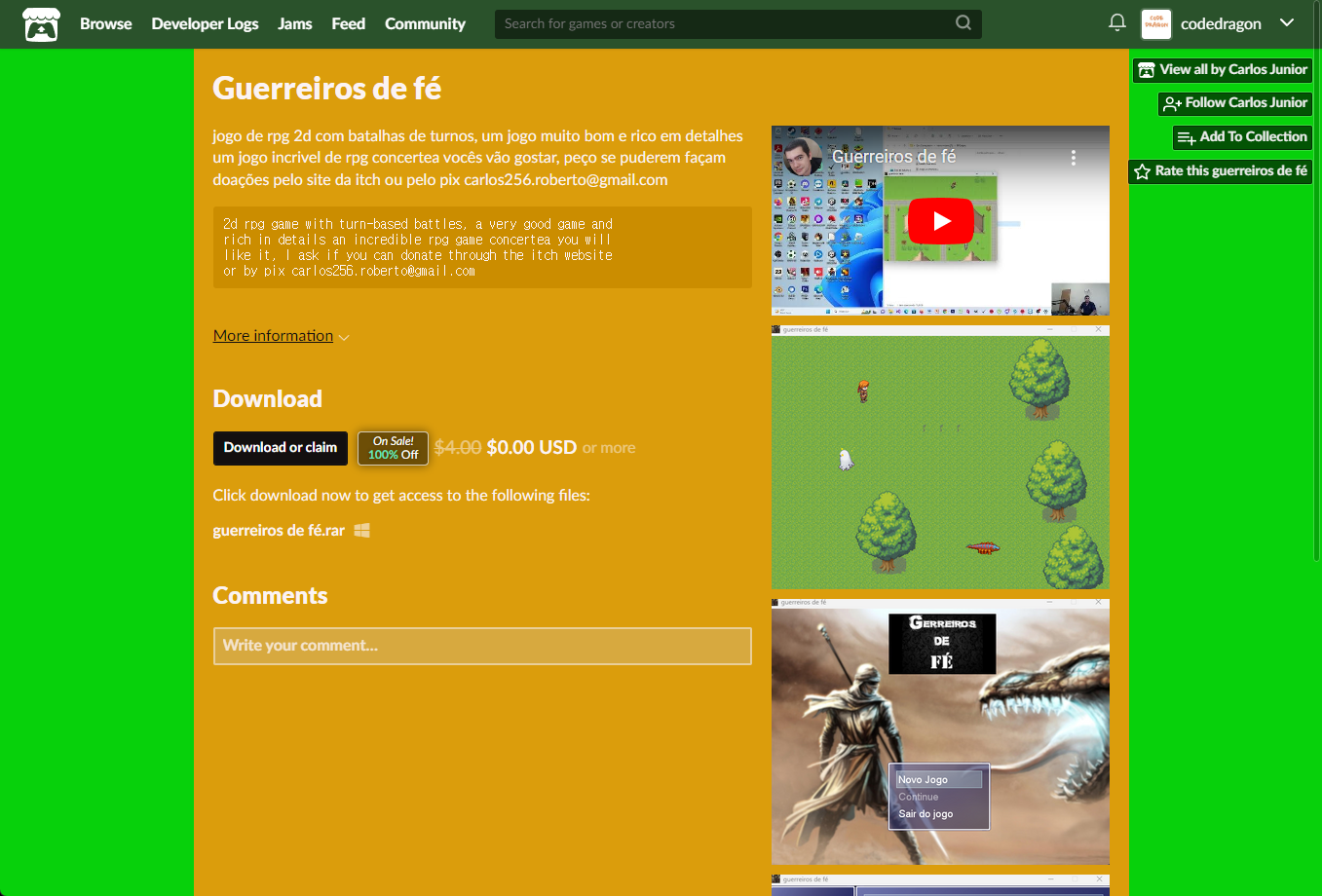 ₩5,290 -> ₩0(Free) Guerreiros de fé 무료로 받기 영구소장 - itch.io 잇치 닷 아이오 한시적 무료 소장하기