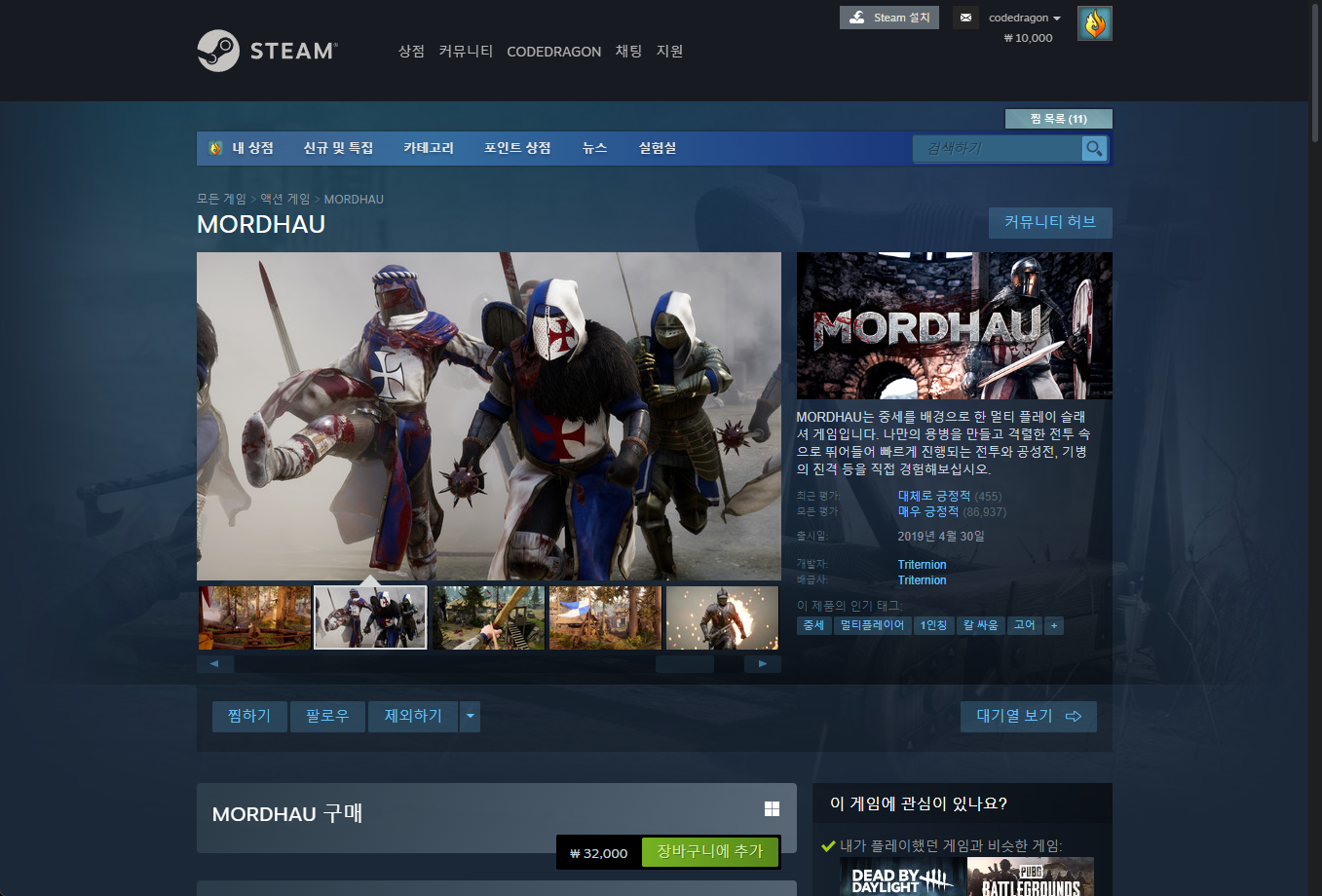 - "MORDHAU" 구매내역 확인하기 - 계정