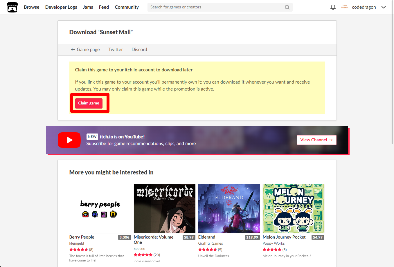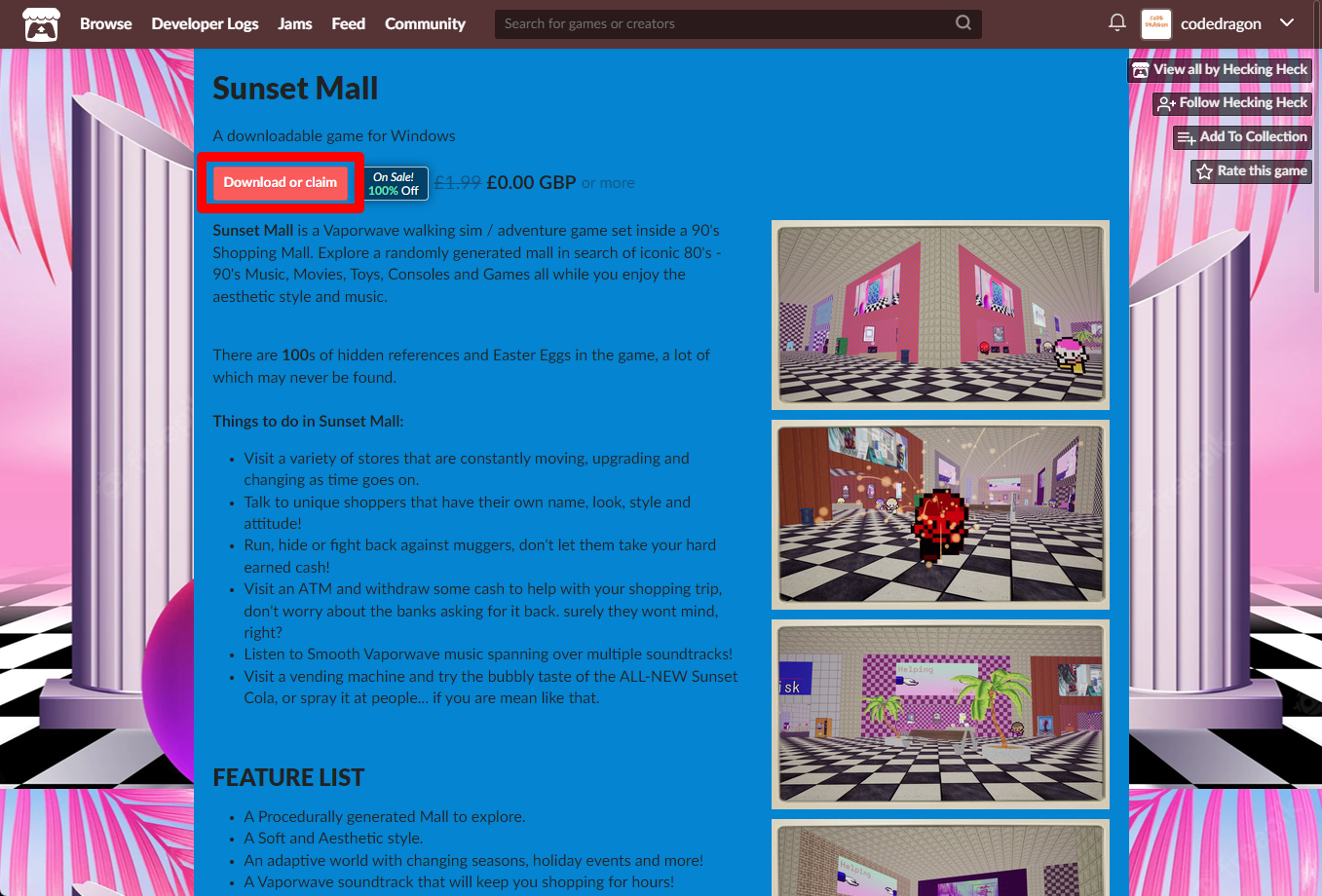 "Sunset Mall" 페이지에 있는 [Download or claim]을 클릭합니다.