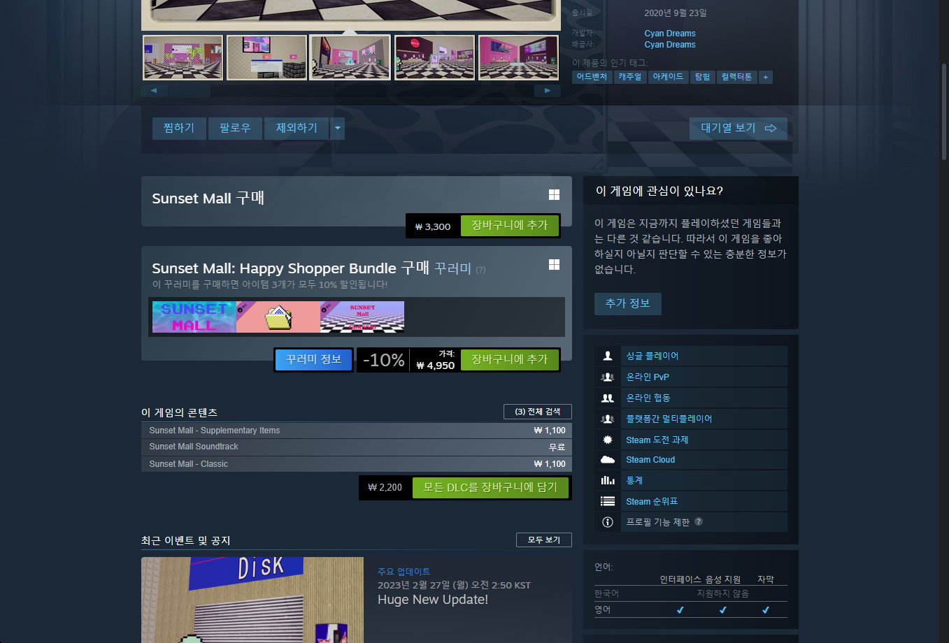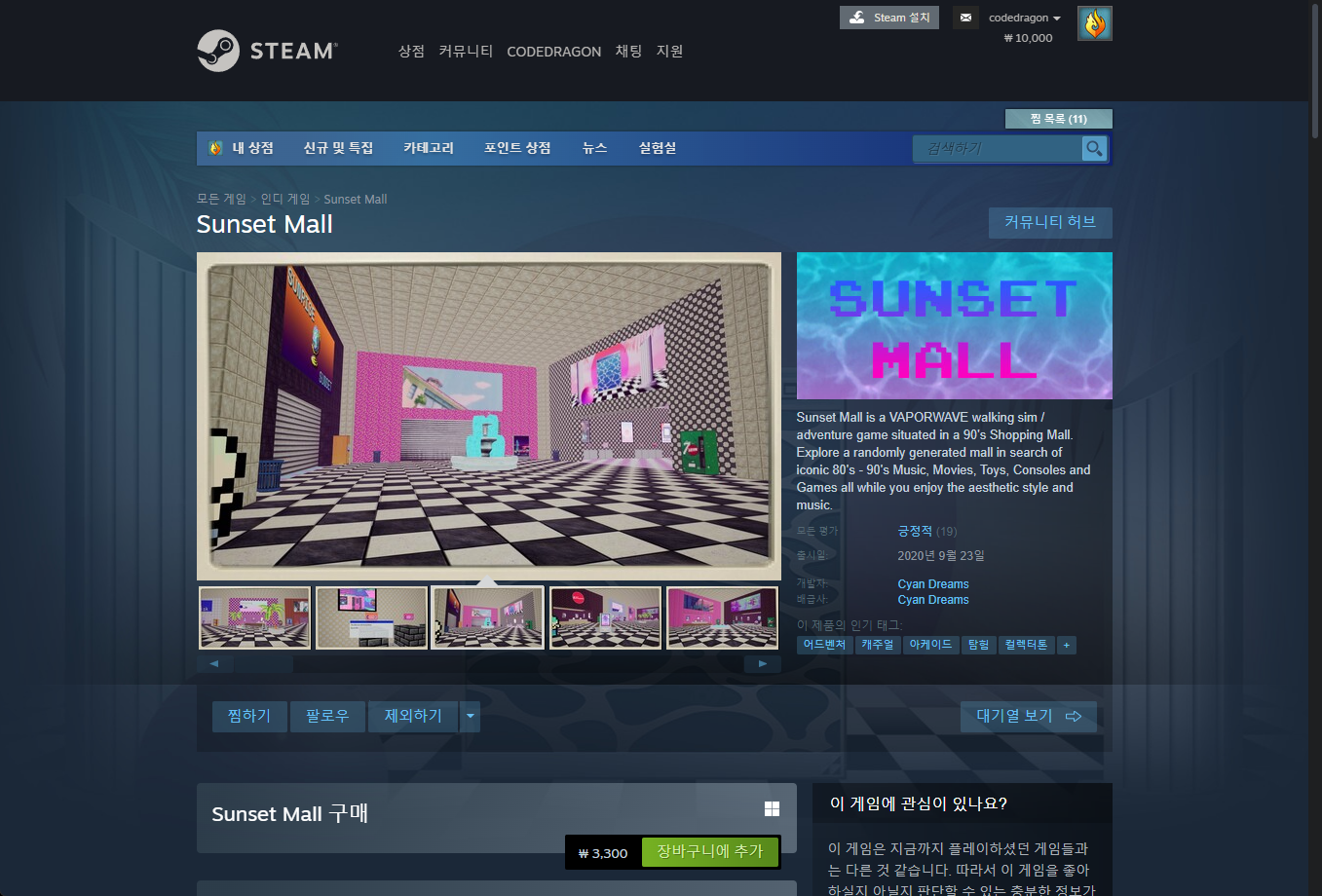 "Sunset Mall" 나의 게임 라이브러리 확인