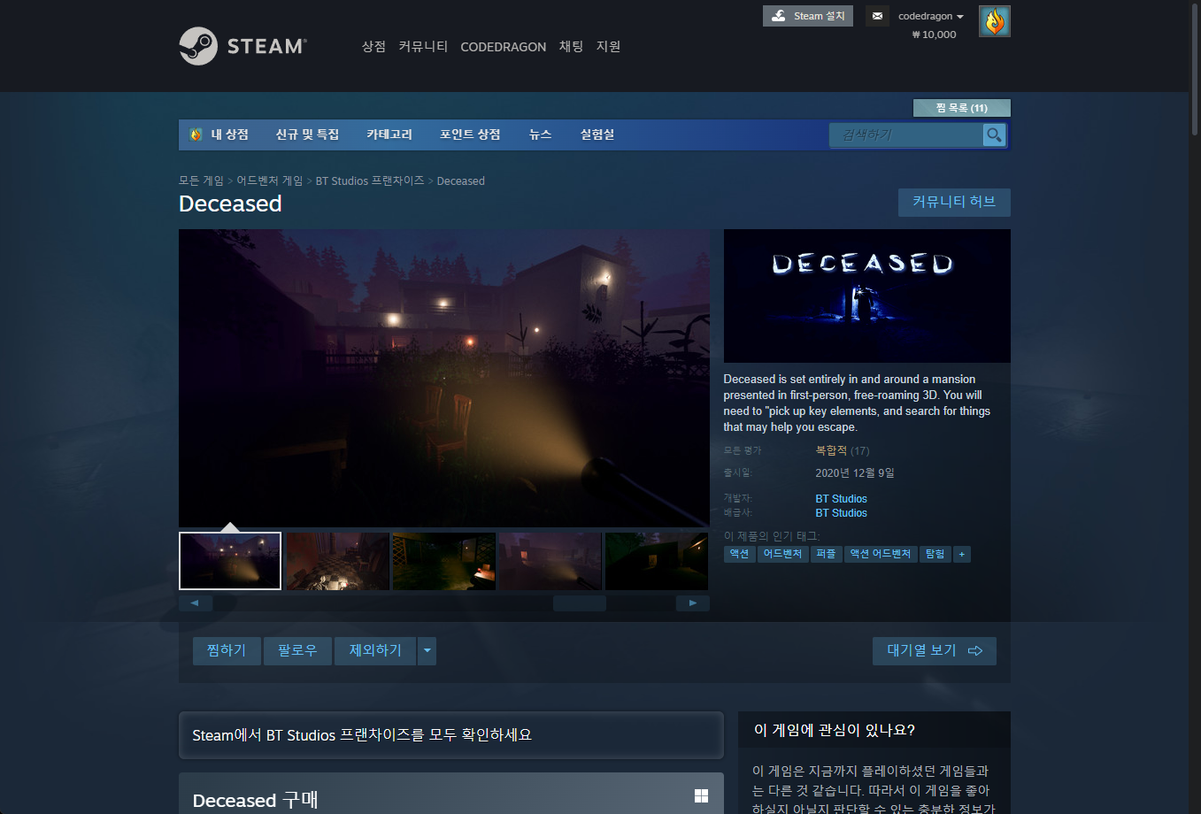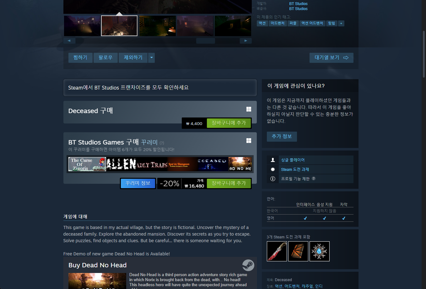 "Deceased" 스팀 Steam 페이지