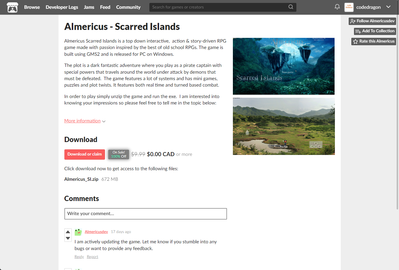₩13,276 -> ₩0(Free) Almericus - Scarred Islands 알메리쿠스 스카드 아이런드 무료로 받기 영구소장 - itch.io 잇치 닷 아이오 한시적 무료 소장하기