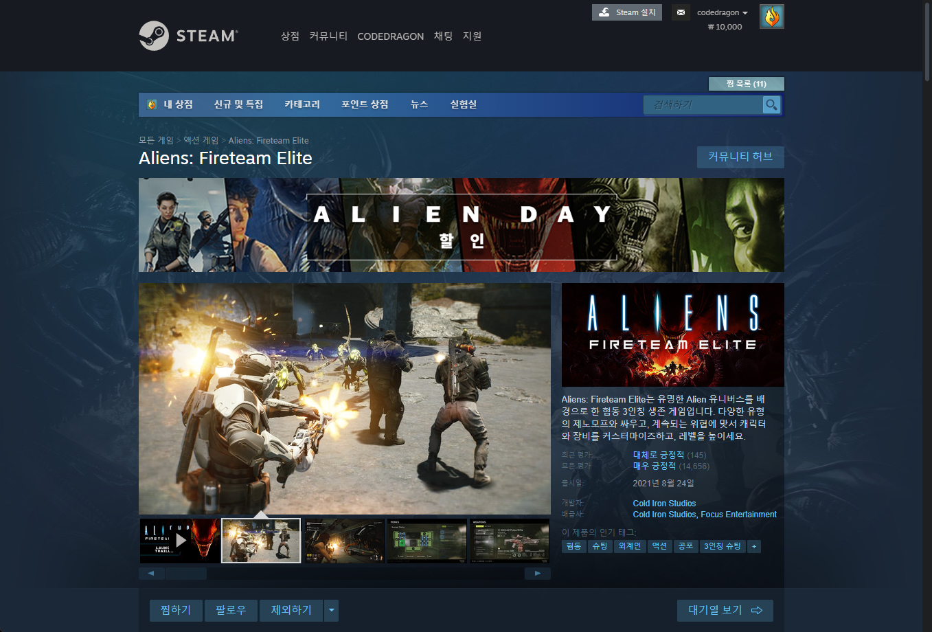 - "Aliens: Fireteam Elite" Steam 스팀 게임 페이지