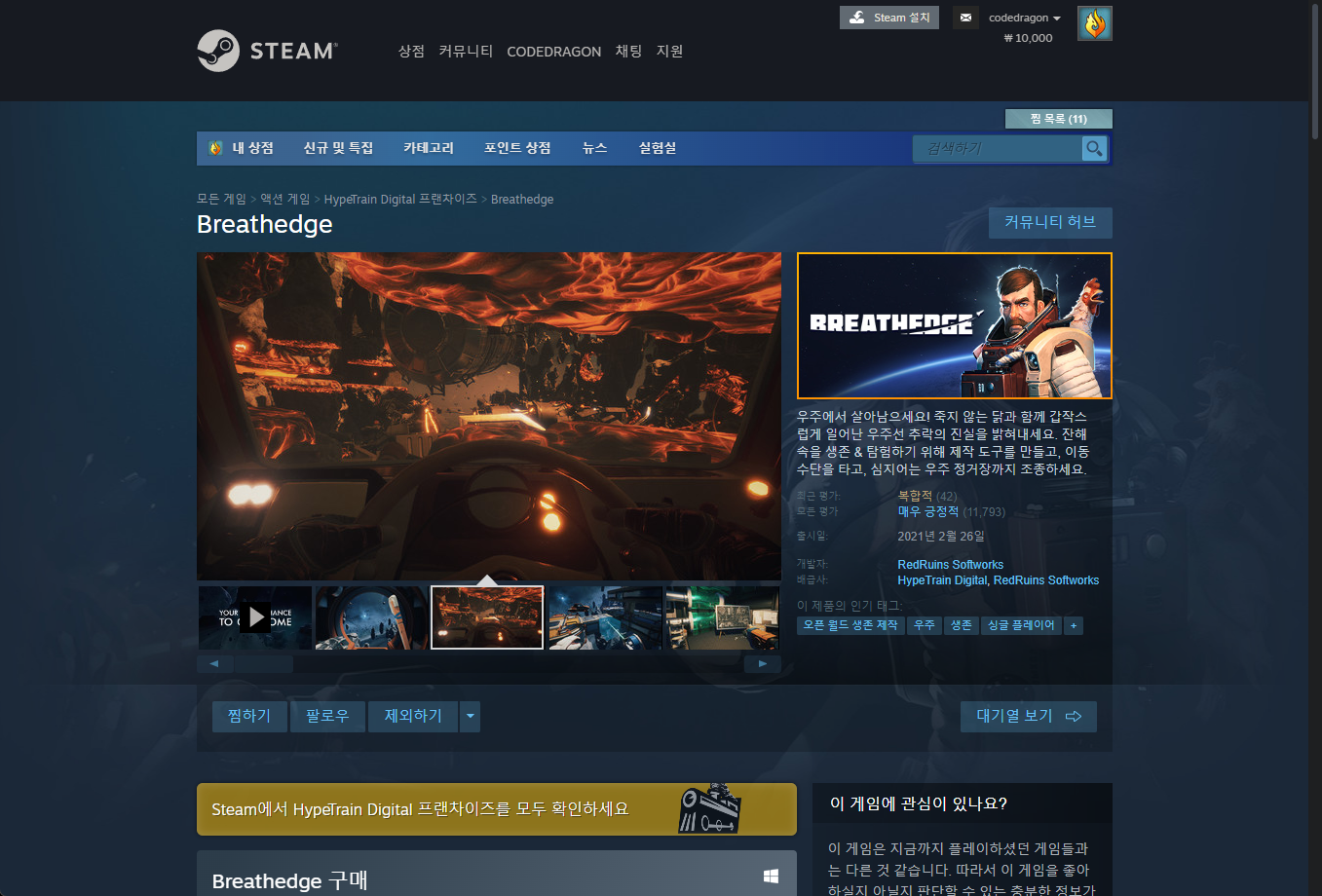 - "Breathedge" 한시적 무료게임 구매하기