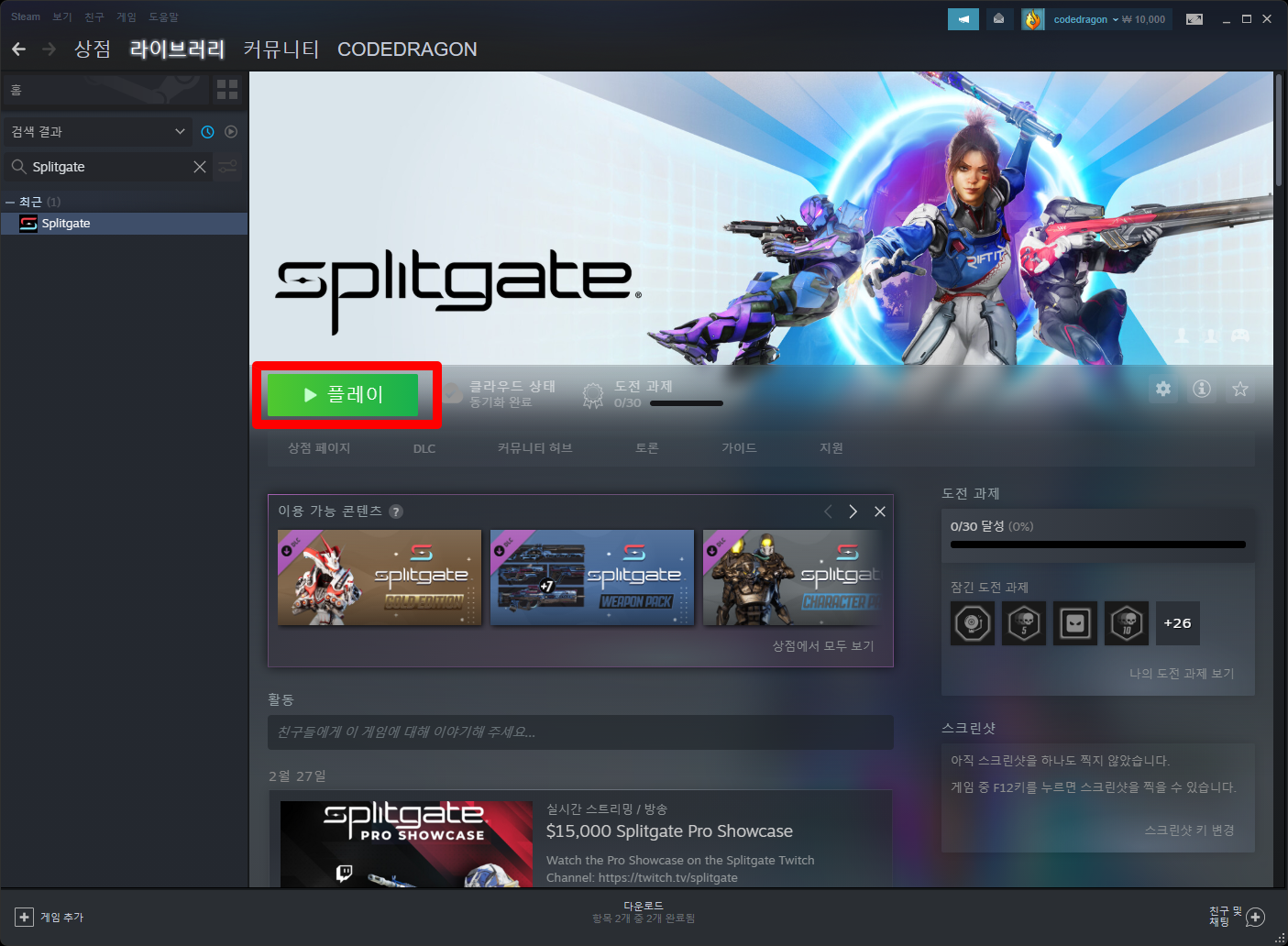 Splitgate 스플릿게이트 - 게임키 DLC 코드 등록하기, 활성화하기 (Steam)