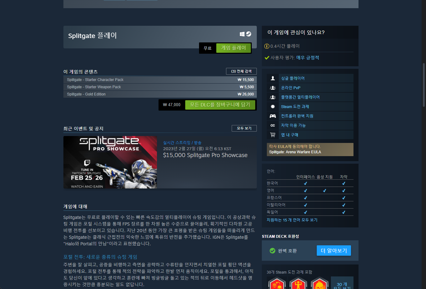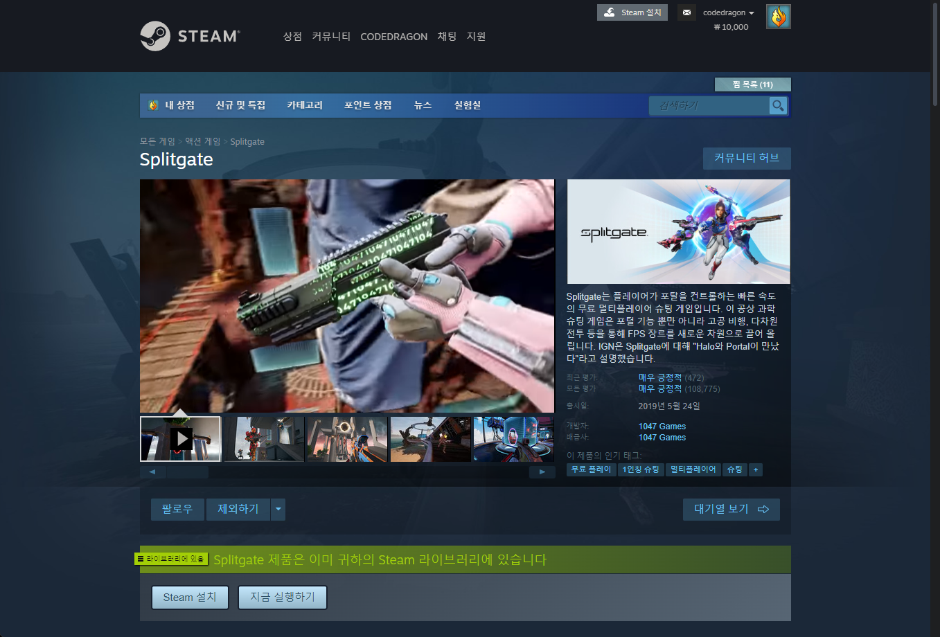 "Splitgate" Steam 스팀 게임 페이지