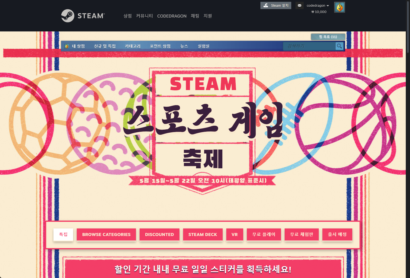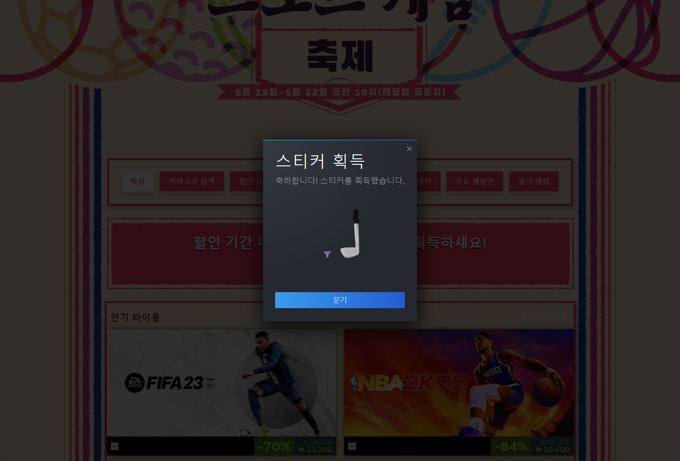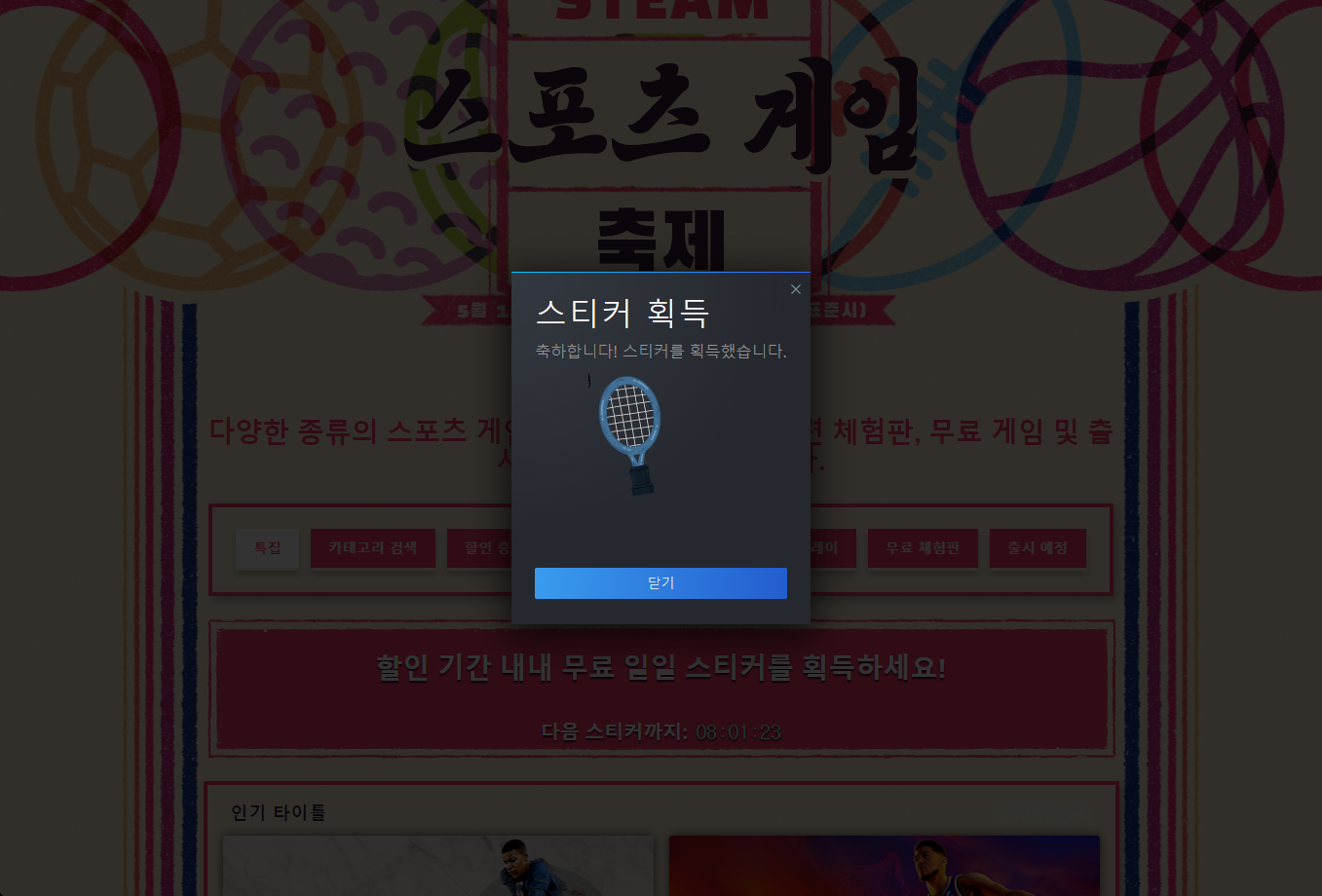 ₩0(FREE) Sports Sales Steam Stickers Sports Sales Steam Stickers 스포츠 게임 세일 무료 일일 스티커 무료 소장하기; 스팀 Steam 한시적 무료 Get free copy
