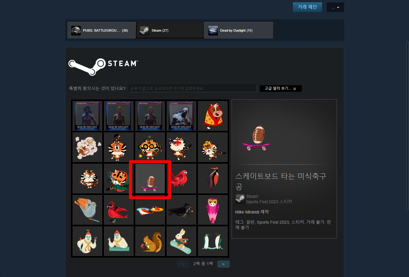- "Sports Sales Steam Stickers" 게임 정보 페이지