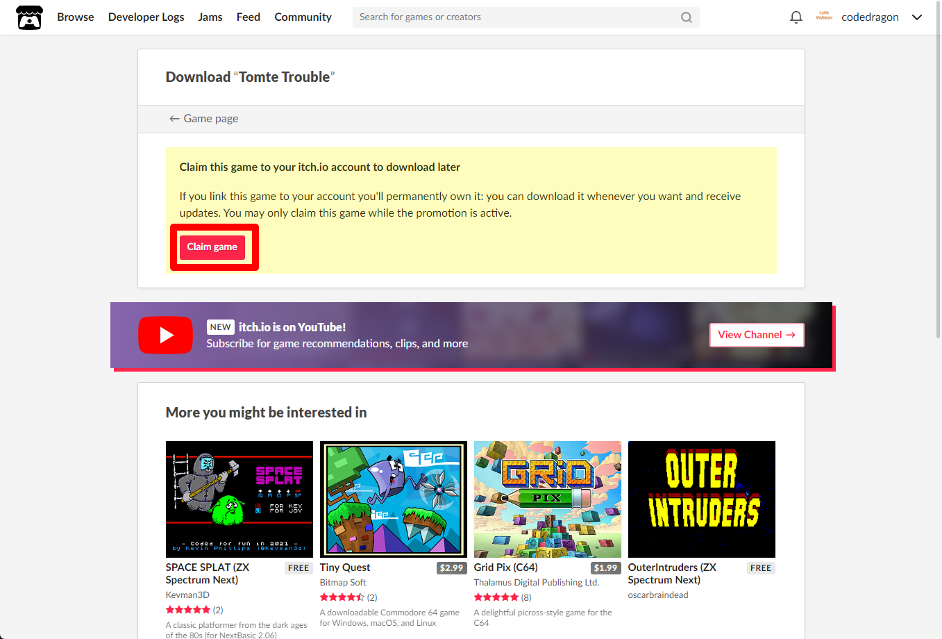 "Tomte Trouble" 페이지에 있는 [Download or claim]을 클릭합니다.