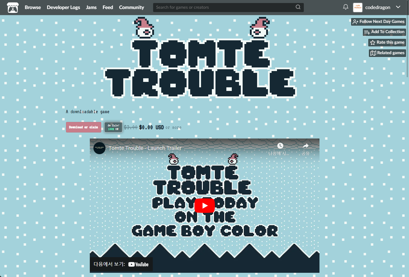 ₩4,026 -> ₩0(Free) Tomte Trouble 톰트 트러블 무료로 받기 영구소장 - itch.io 잇치 닷 아이오 한시적 무료 소장하기