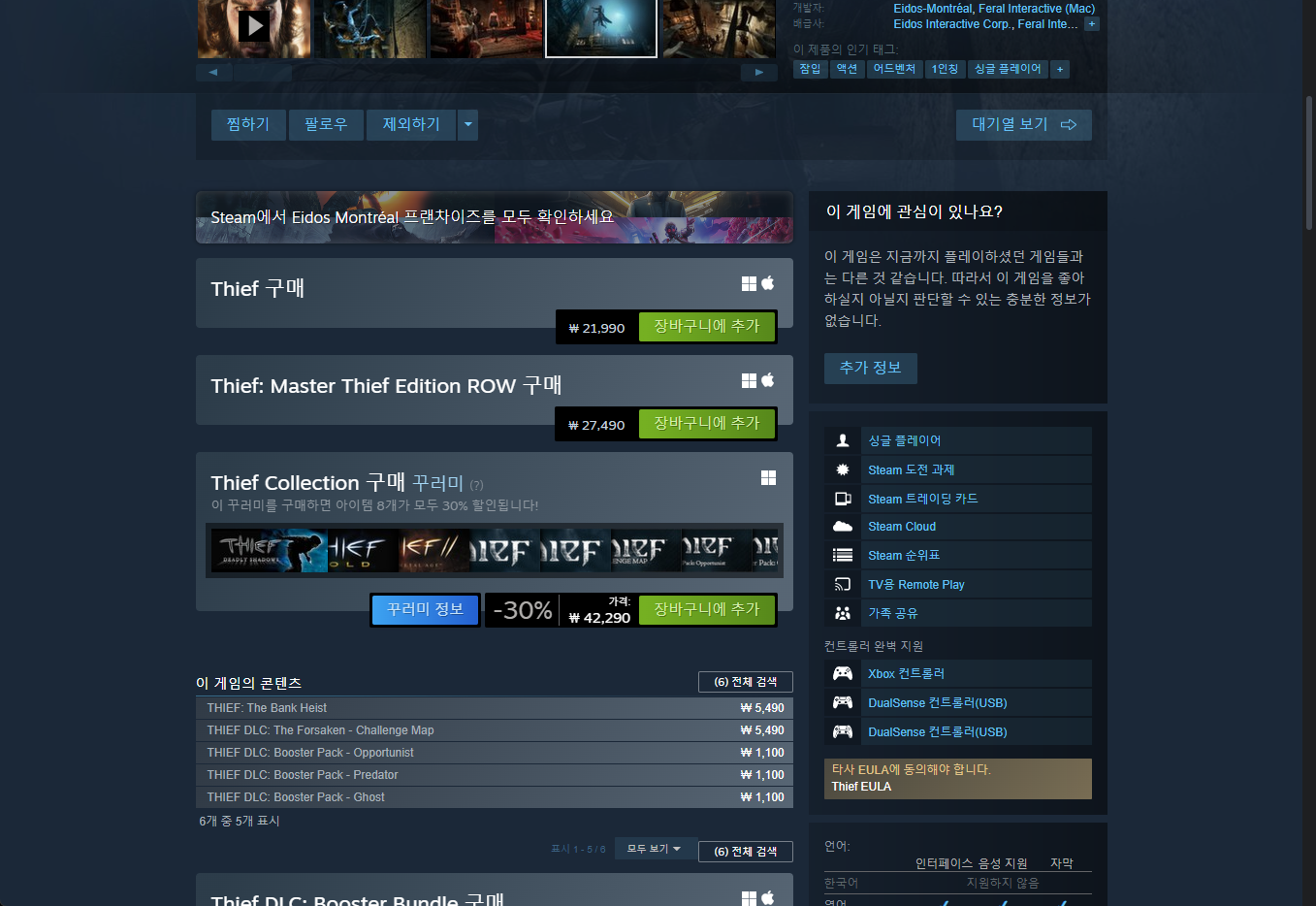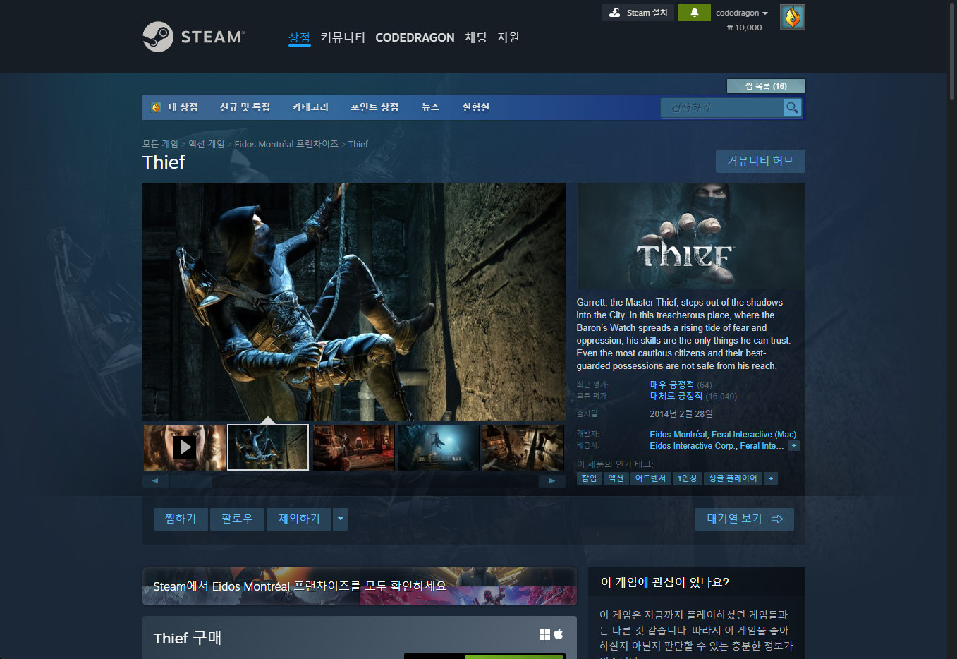 "Thief" - Steam 스팀 게임 페이지