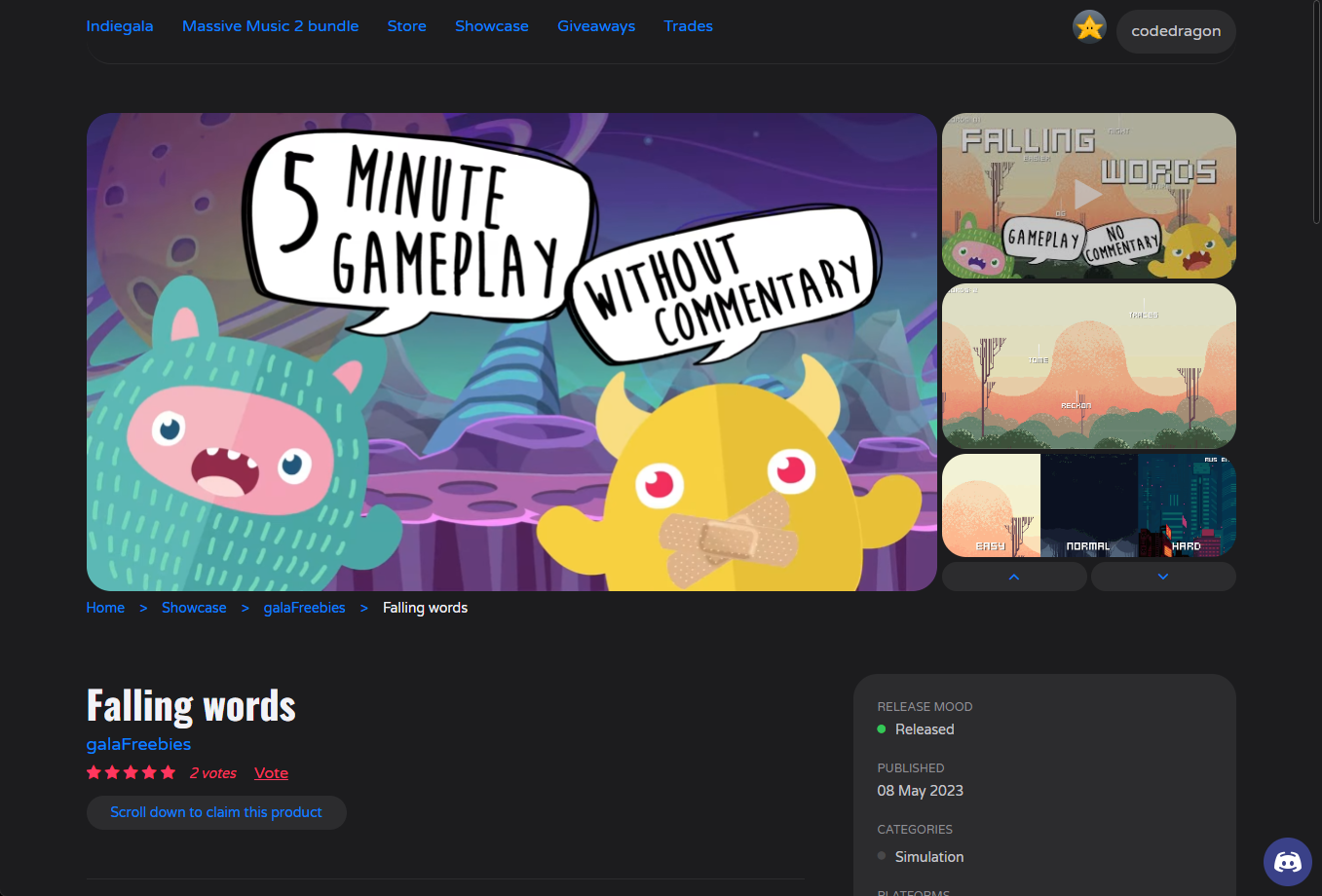 "Falling words" 게임 스팀 페이지입니다.