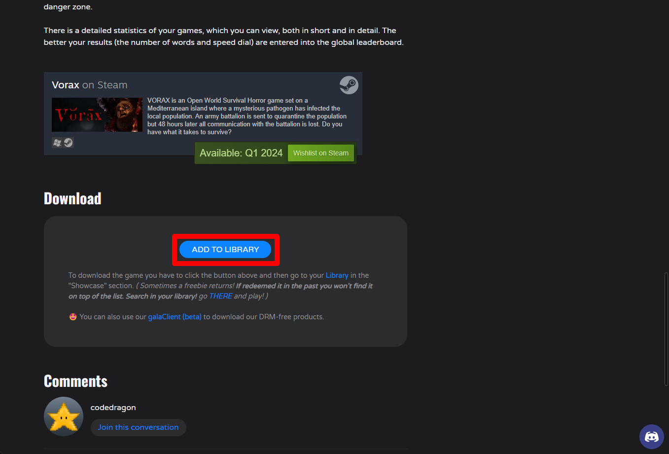 "Falling words" 게임 페이지를 내려 [ADD TO LIBRARY]를 클릭합니다.