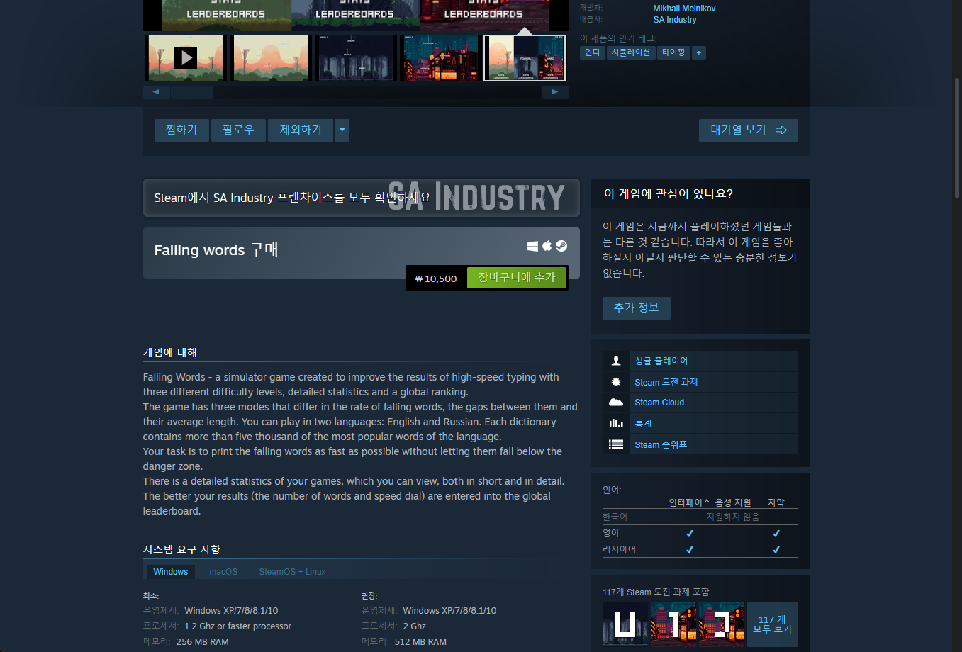 "Falling words" - Steam 스팀 페이지