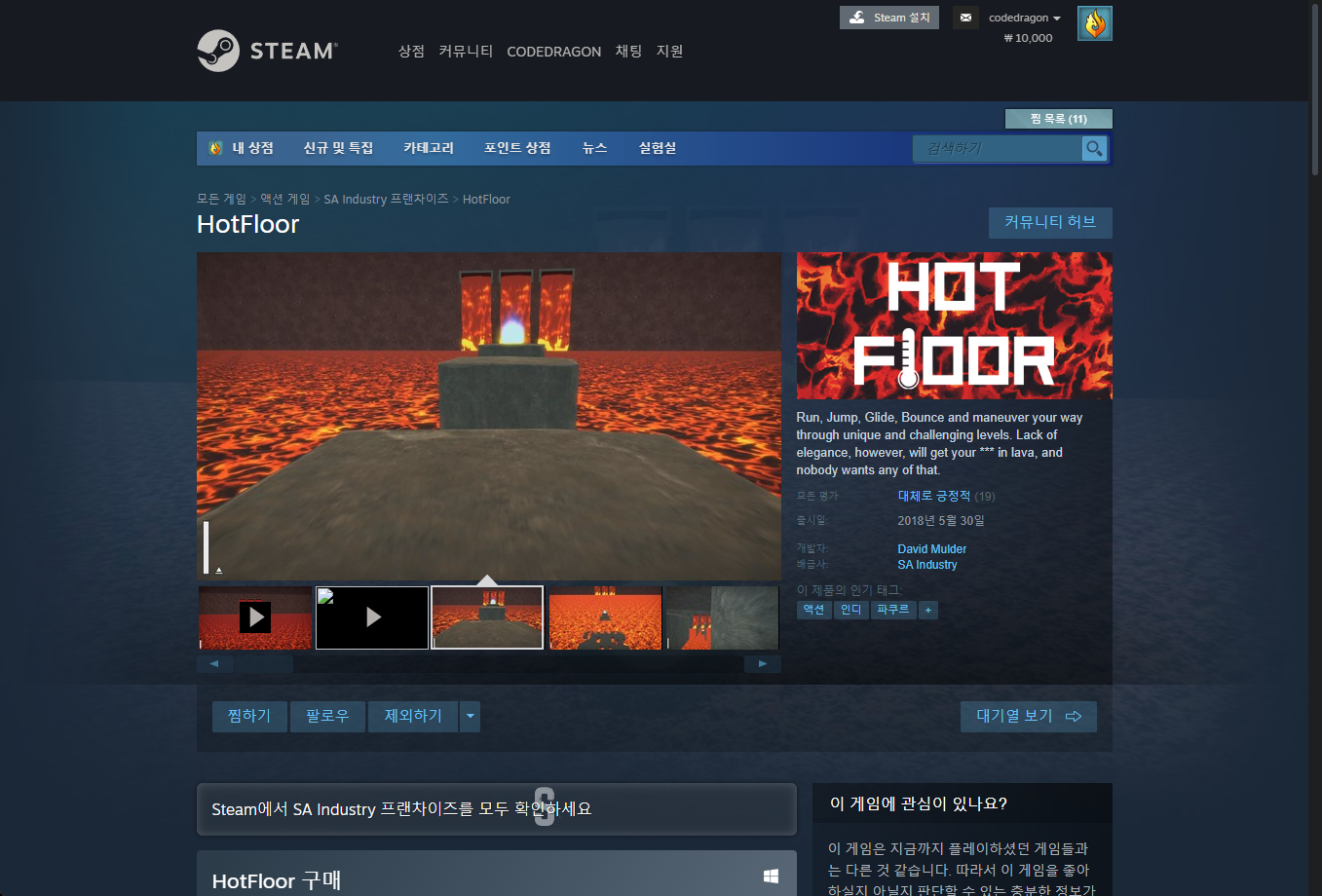 ₩10,500 -> ₩ 0(Free) HotFloor 핫플로어 무료 - 인디갈라 indiegala 무료 소장 기회 기간한정 indiegala FREE GAME, Limited time