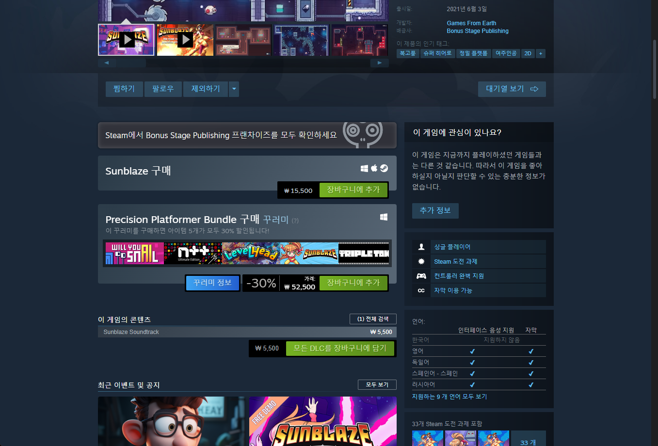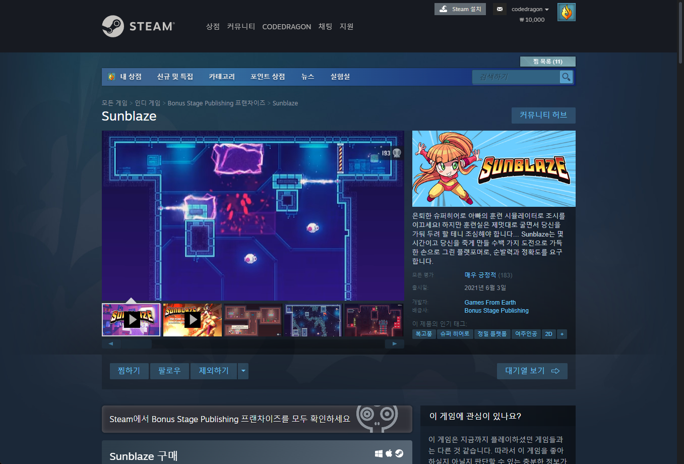 "Sunblaze" - Steam 스팀 페이지