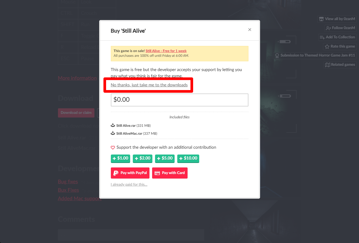"Still Alive" 구매창에서 [No thanks, just take me to the downloads] 링크를 클릭합니다.