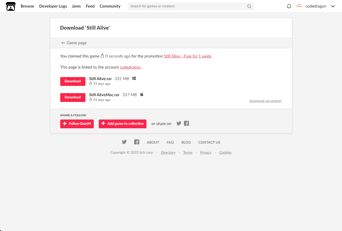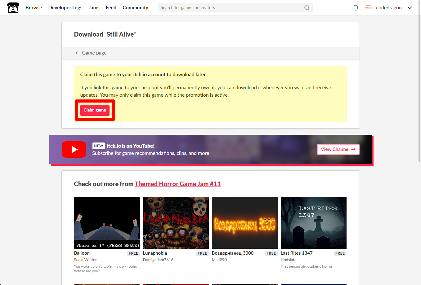 "Still Alive" 페이지에 있는 [Download or claim]을 클릭합니다.