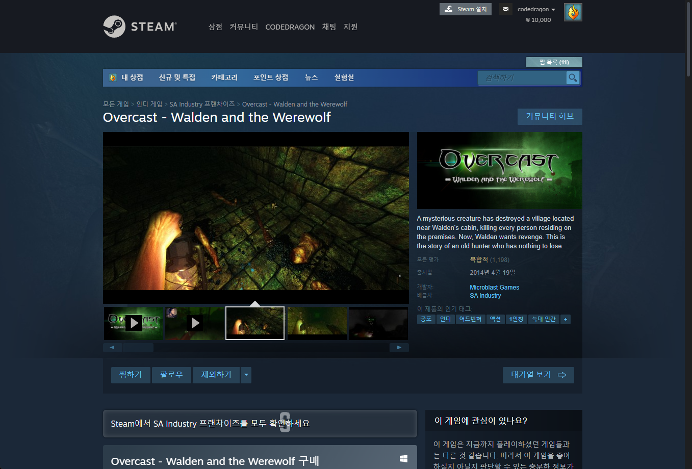 - "Overcast - Walden and the Werewolf" 게임 보유 확인 & 설치파일 다운로드