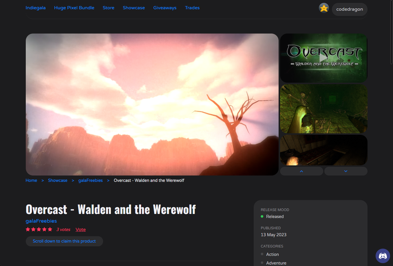 ₩1,100 -> ₩ 0(Free) Overcast - Walden and the Werewolf 무료 - 인디갈라 indiegala 무료 소장 기회 기간한정 indiegala FREE GAME, Limited time