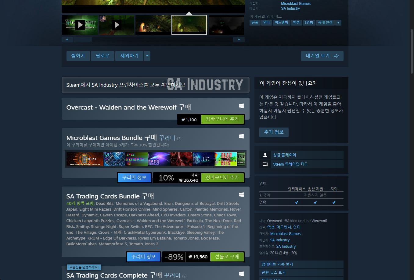 - "Overcast - Walden and the Werewolf" - Steam 스팀 페이지