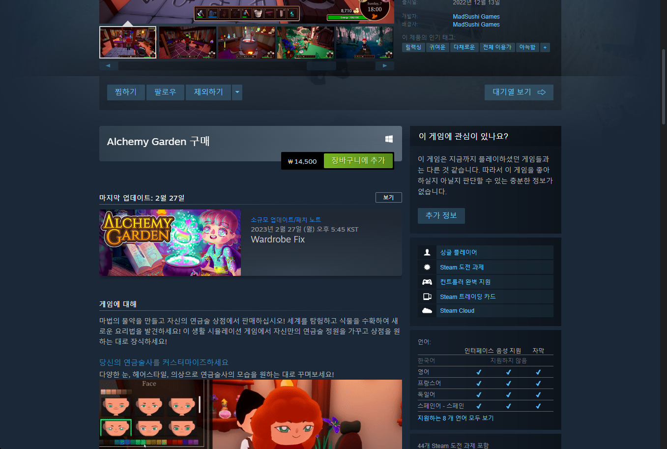 "Alchemy Garden" - Steam 스팀 게임페이지